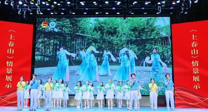 同学们带来的重庆市第七届大学生艺术展演市级一等奖获奖作品——朗诵《值得》,讲述了中国核武器研制工作的开拓者和奠基者之一、“两弹一星”元勋邓稼先28年间深藏身与名,终其一生为国奋斗的动人故事。情景展示《上春山》,展现了新时代重医青年在绿色校园踏青而歌、随韵起舞的美好画面,呈现了新征程重医青年赓续西迁血脉、矢志青春许国,踔厉奋发、勇毅前进、向下扎根,向上生长的青春风采。