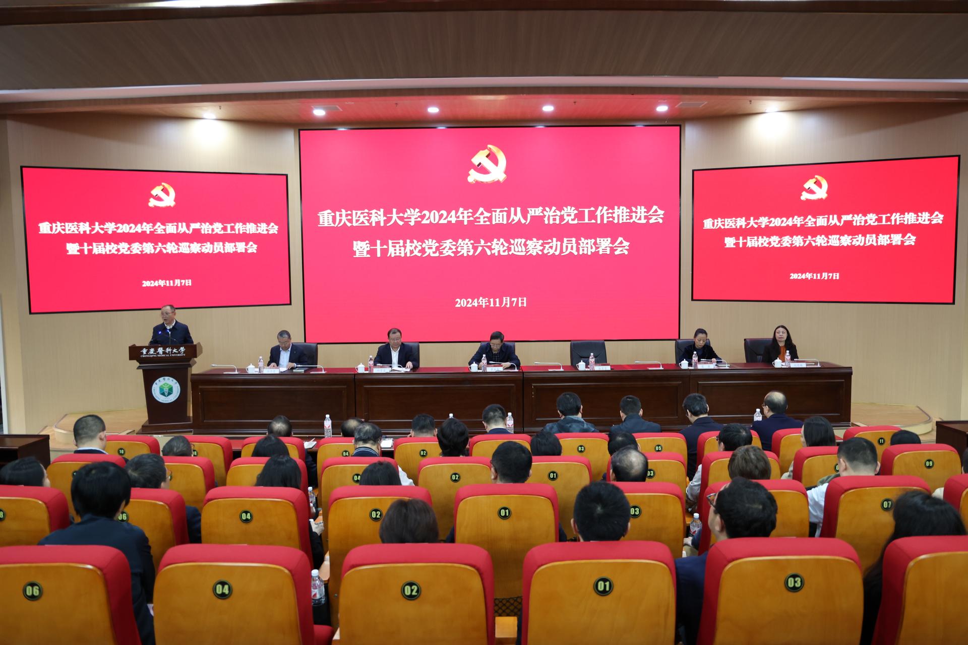11月7日,8868官方注册召开2024年全面从严治党工作推进会暨十届校党委第六轮巡察动员部署会,深入贯彻落实习近平总书记关于党的自我革命的重要思想,落实市属高校全面从严治党暨纪检监察工作会议和市属高校“一把手”例会会议精神,推进市属高校基建、后勤、校办企业“三个专项”监督检查发现问题整改工作,调度清廉8868官方注册建设工作推进情况,动员部署十届校党委第六轮巡察工作,进一步压实管党治党政治责任,持续净化政治生态,为8868官方注册高质量发展提供坚强政治保障。校党委书记、校党委巡察工作领导小组组长覃正杰出席会议并讲话。校党委常委、纪委书记,市监委驻校监察专员,校党委巡察工作领导小组副组长余彦学主持会议。校党委常委、副校长,校党委巡察工作领导小组副组长余华荣宣读党委巡察组、评估组组长授权及任务分工决定。校领导葛萍、邱景富、刘恩梅出席会议。