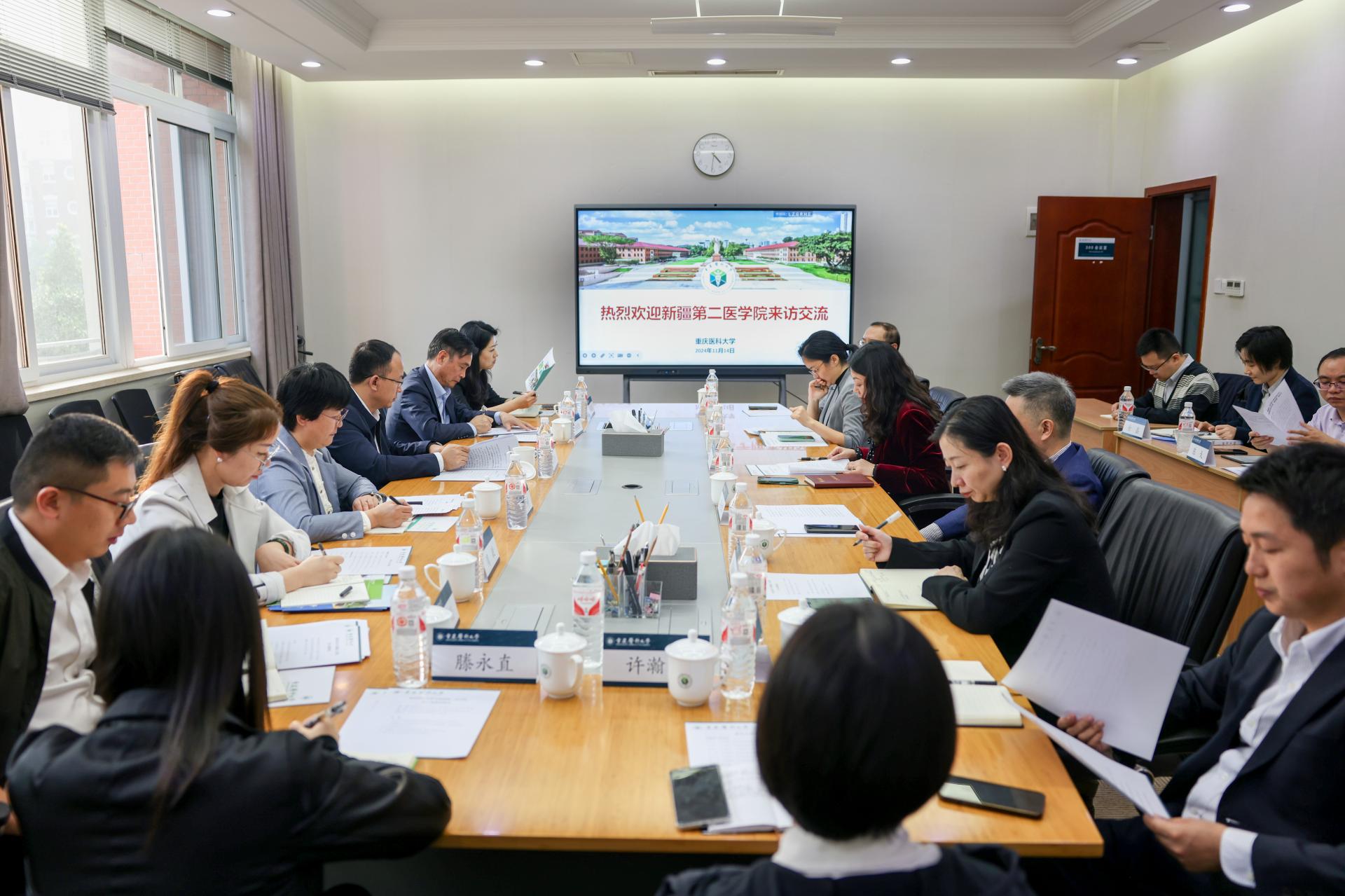 11月14日,新疆第二医学院党委副书记、校长李建光,副校长郭玉婷一行来我校调研参观,并就对口支援相关工作进行座谈交流。8868官方注册副校长邱景富、副校长刘恩梅,教学指导委员会主任邓世雄出席了相关活动。