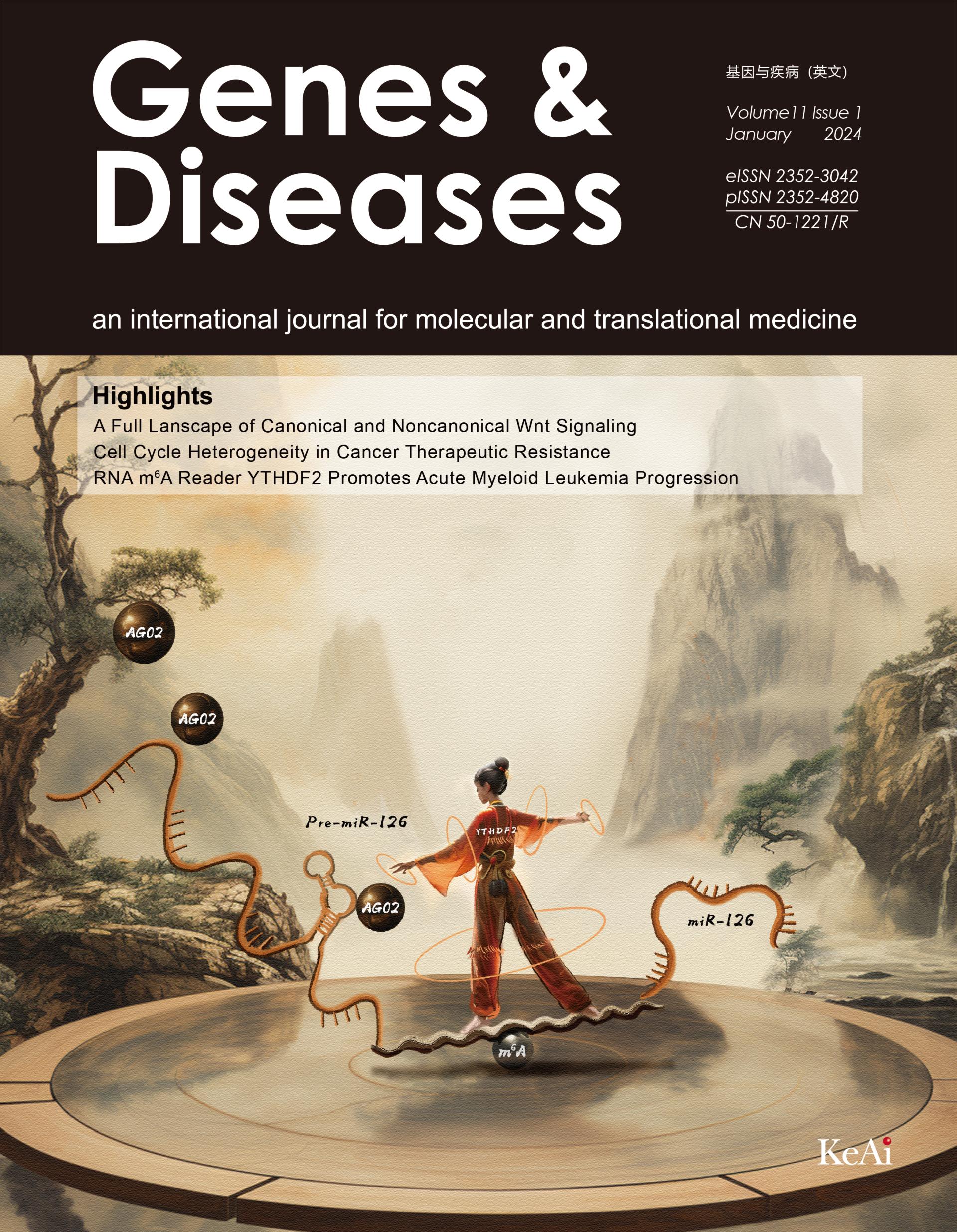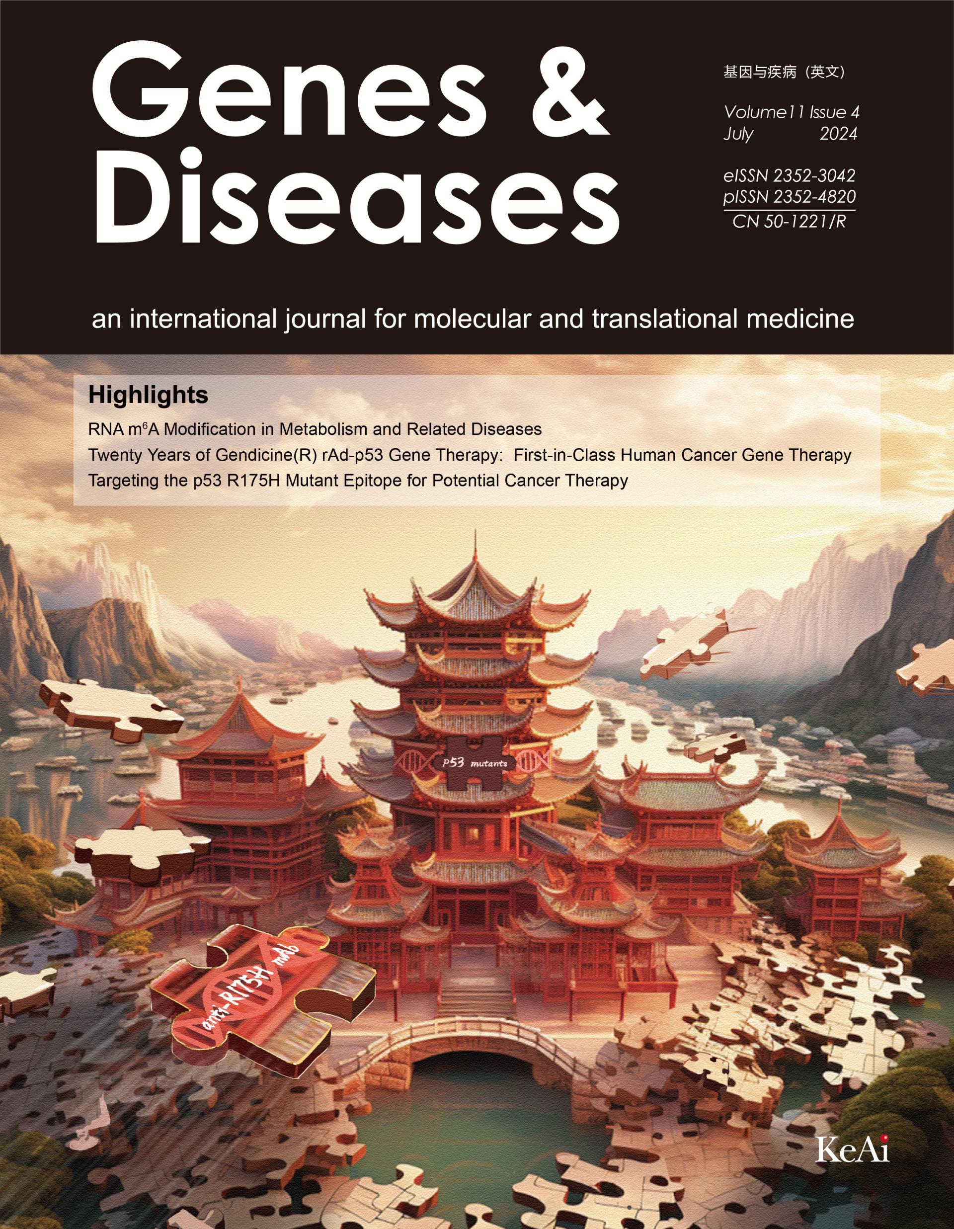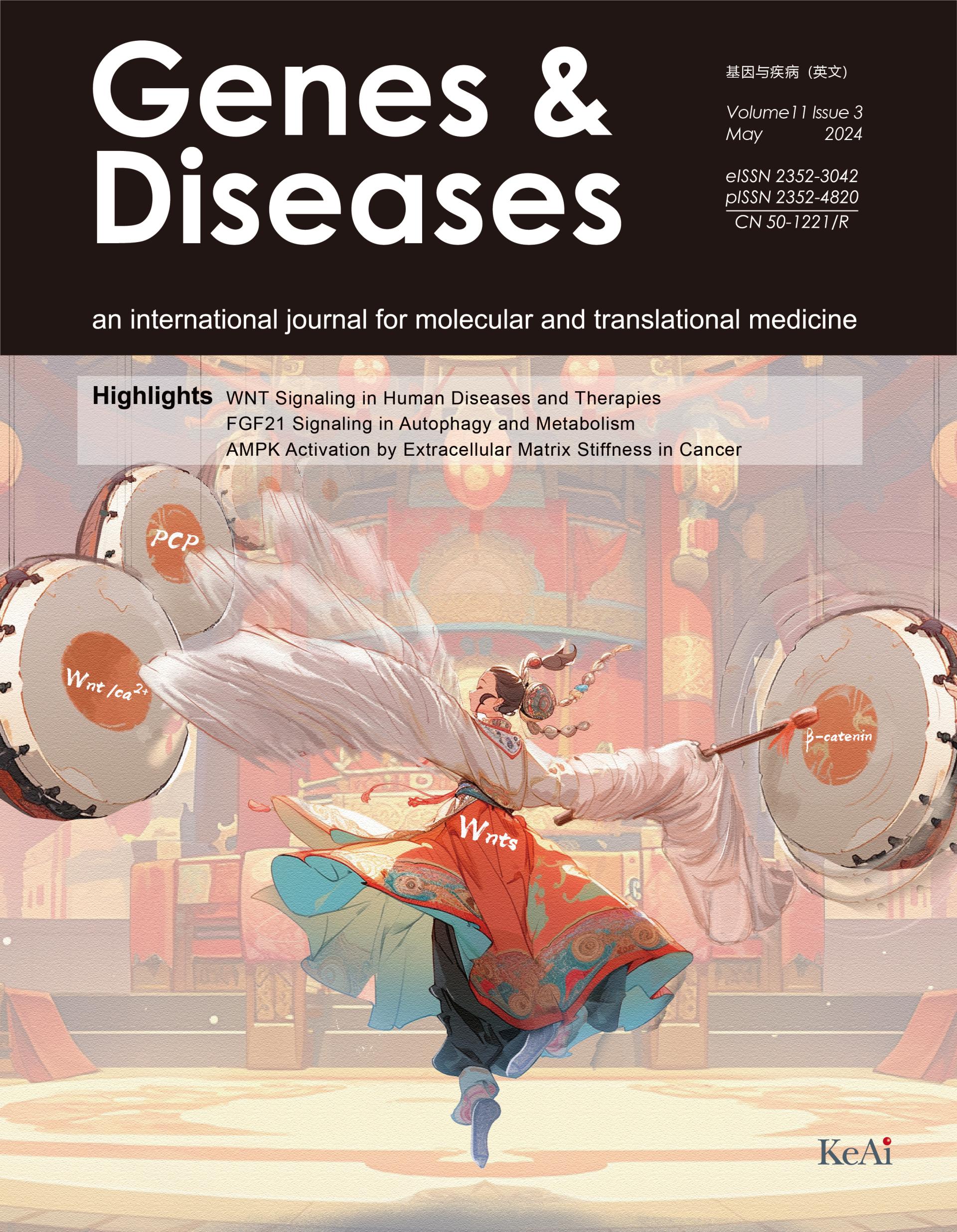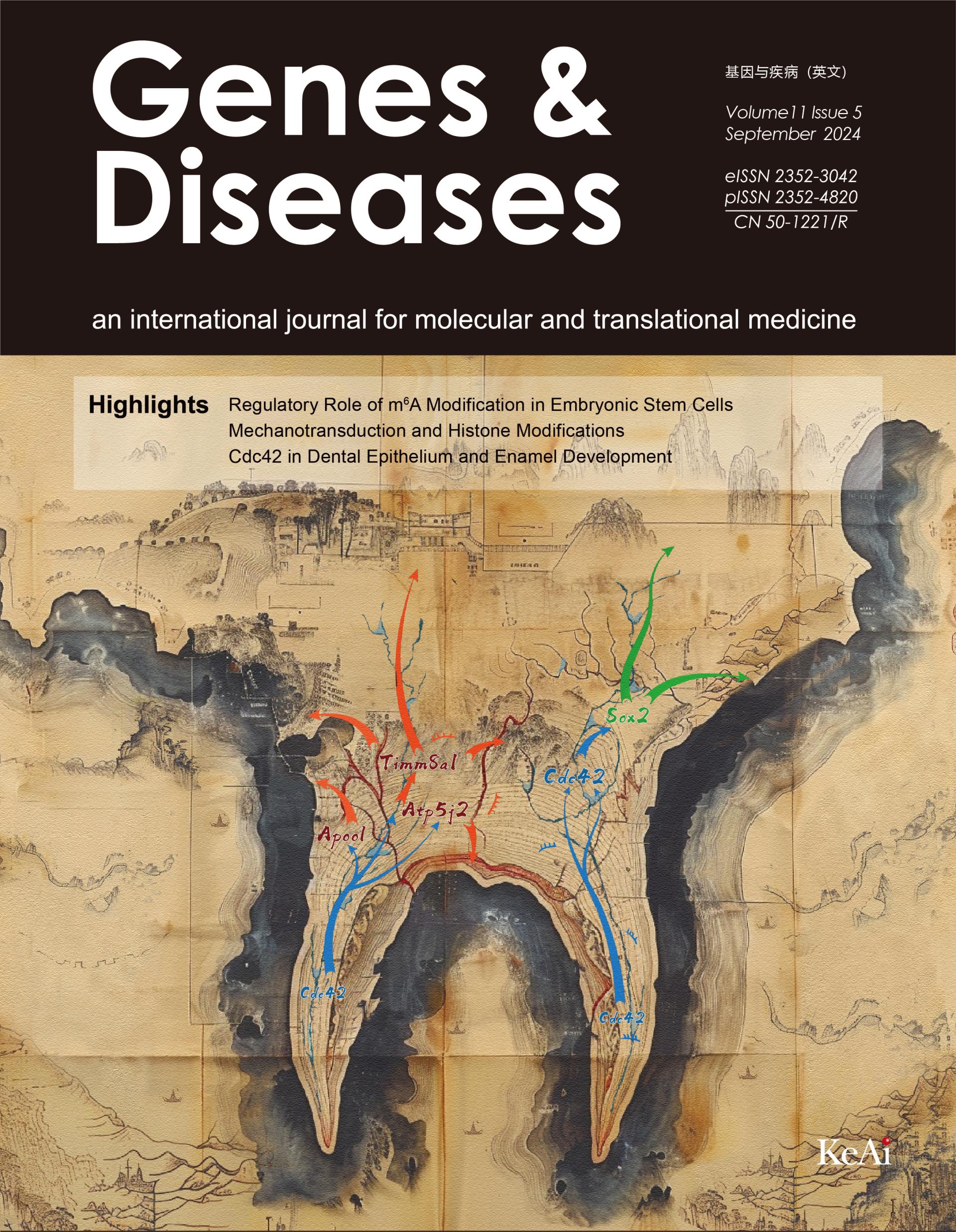Genes & Diseases创刊于2014年9月,由我校校长黄爱龙教授与芝加哥大学医学中心何通川教授共同担任主编,定位为国际化、高影响力的生物医学综合性科技期刊,目前已被SCIE、PMC、Scopus、DOAJ、CSCD(核心库)、CAS、中国科技核心数据库等国内外知名数据库收录,2021年由季刊变更为双月刊。2019年至2023年影响因子分别为4.803、7.103、7.376、6.8及6.9,在JCR分区中一直稳居生物化学与分子生物学、遗传学两个学科Q1区。获得“中国最具国际影响力学术期刊”Top 5%、中国高校科技期刊建设示范案例库·杰出科技期刊、川渝一流科技期刊、重庆市精品英文科技期刊、重庆市名刊等多项荣誉。Genes & Diseases在8868官方注册领导,各院系、附属医院的支持下不断发展壮大,得到了国内外同行的关注、推动了学术的国际交流合作、促进了8868官方注册学科的发展。