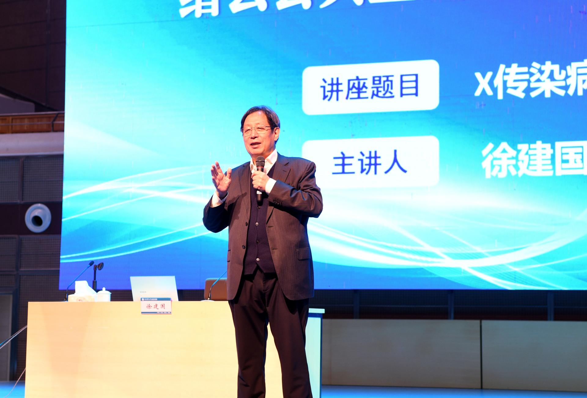 邱景富为讲坛致辞,对徐建国院士的到来表示热烈欢迎和诚挚感谢。邱景富表示,此次论坛是一次难得的学习交流机会,希望全校师生们能够充分珍惜学术交流的宝贵契机,深化对新发传染病多学科交叉研究范式的理解,掌握传染病防控从理论到实践的方法论,提升解决重大公共卫生问题的实战能力,共同参与并破解X传染病传播机制与防控策略等科学难题,为人类的健康事业作出更大的贡献。