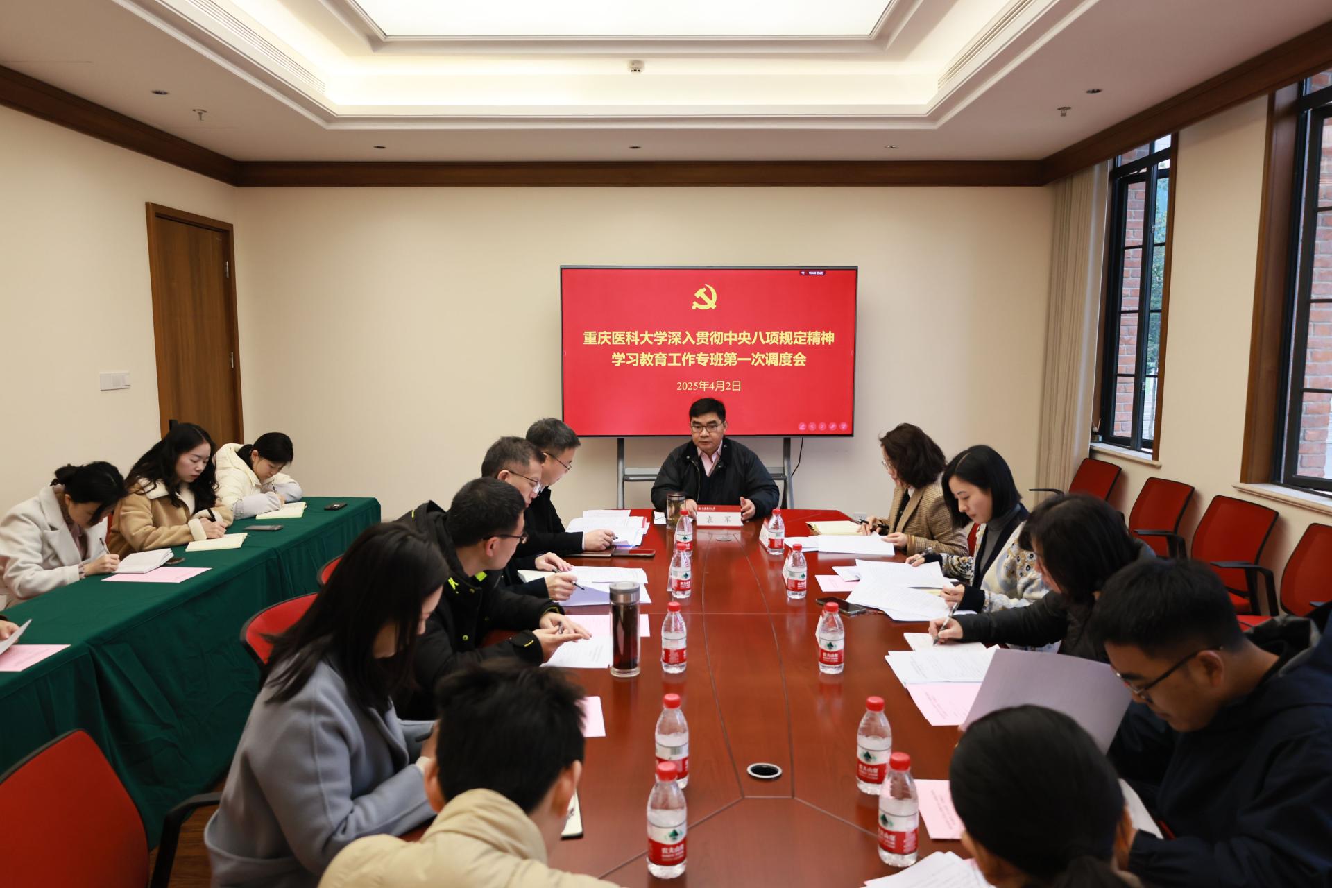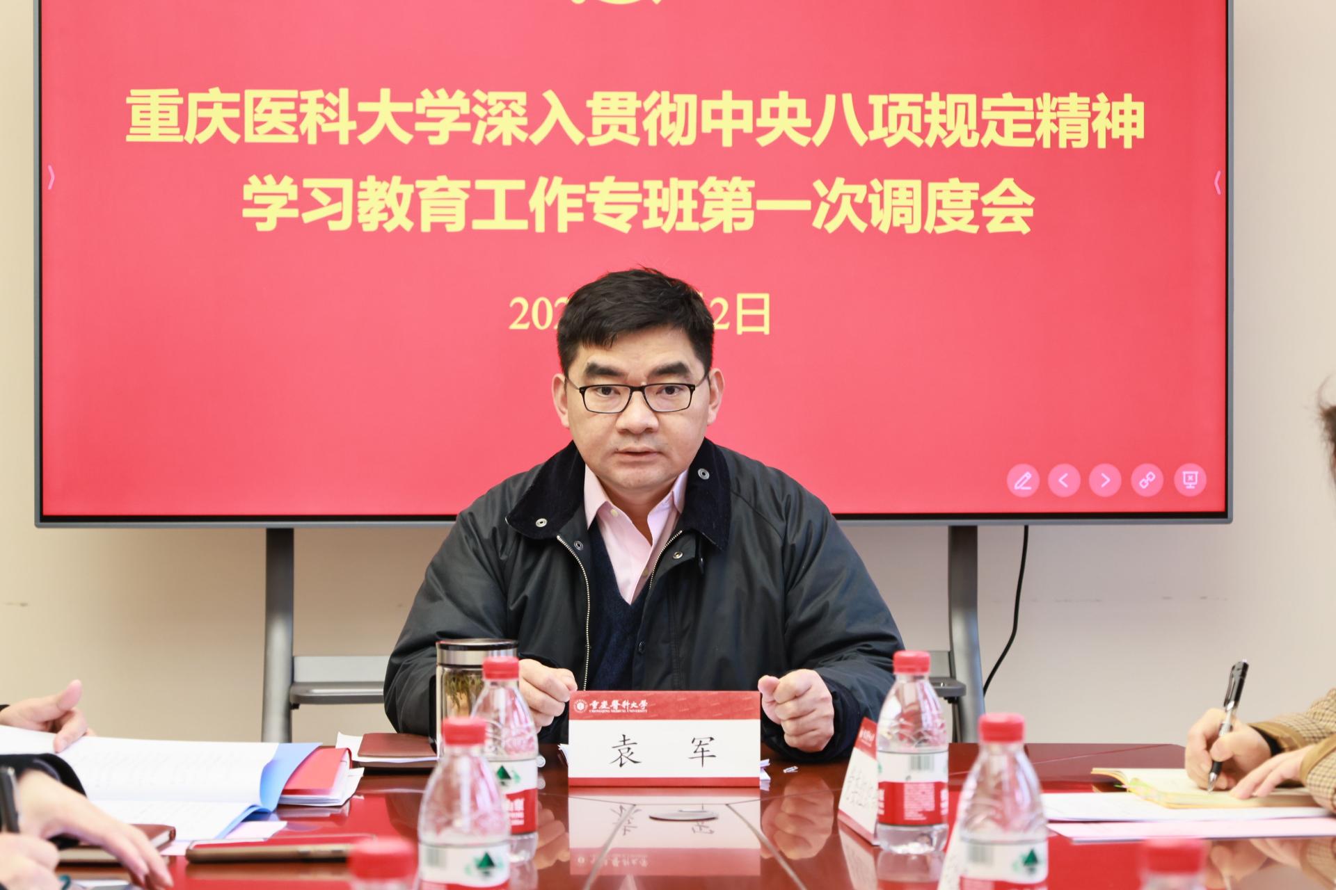 4月2日上午,8868官方注册深入贯彻中央八项规定精神学习教育工作专班举行第一次调度会,校党委副书记、副校长袁军主持会议并讲话。