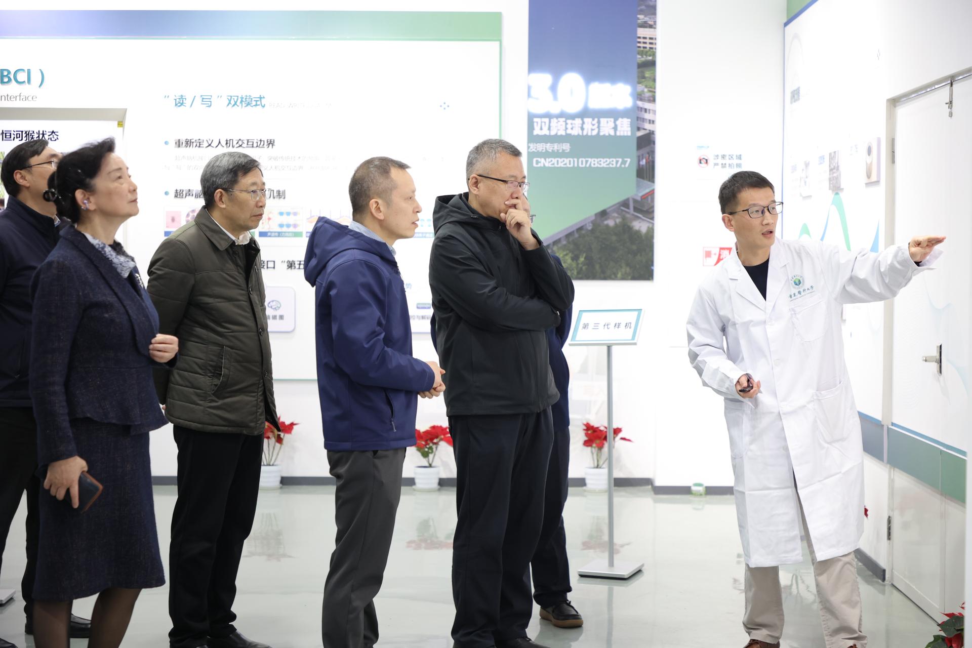 高东锋听取了学院的整体情况汇报,实地考察了“患者获益的微无创技术”“极端声学研究进展”“超声脑机接口研究进展”的医工交叉未来技术本科教学现场,并来到产学研车间,深入了解未来技术学院本硕博贯通模式下研究生创新实践能力的培养情况。高东锋对8868官方注册在医工交叉、医学未来技术人才培养及研发方面的探索和取得的成绩给予了肯定,希望8868官方注册继续深化医工融合、产教融合,培养更多创新人才,在学科建设、科研攻关和产教融合方面形成更多可复制推广的示范经验,为健康中国建设贡献智慧力量。
