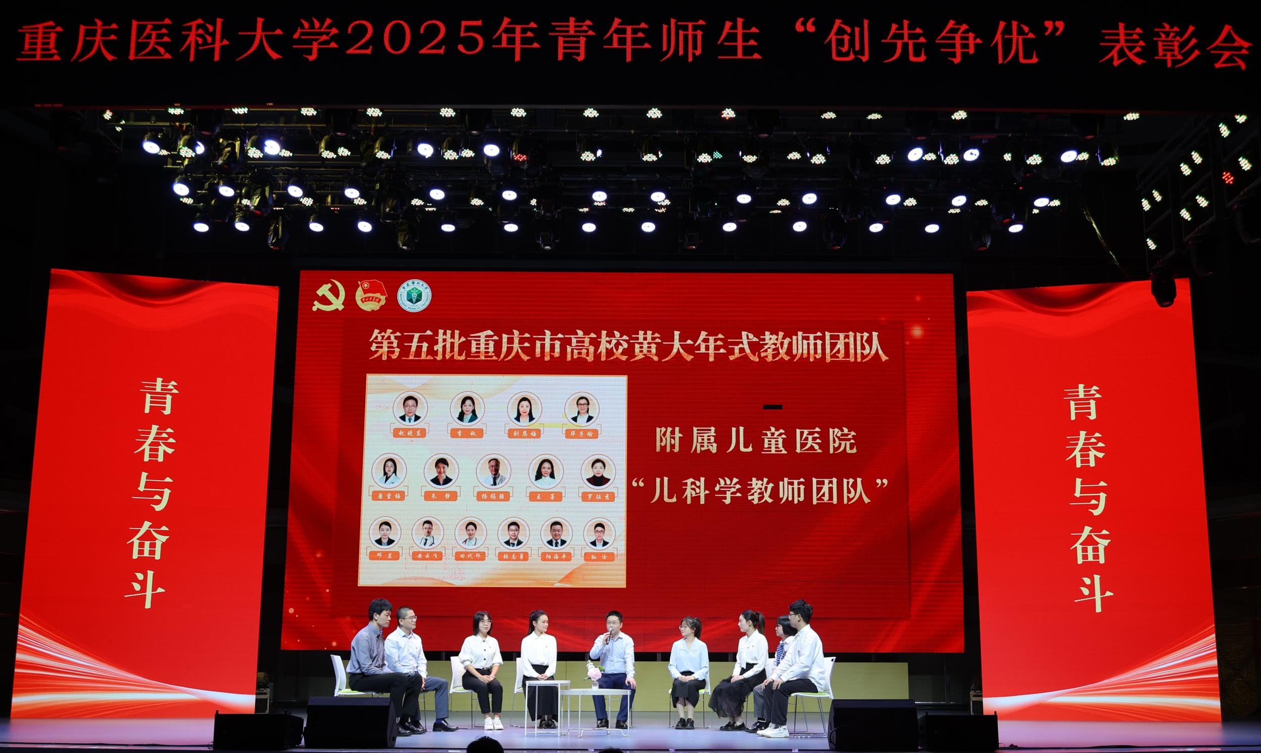 马克思主义学院副院长郭笑雨主持《青春与奋斗》访谈环节。访谈中,第五批重庆市高校黄大年式教师团队代表、儿科学院张志勇老师,2024年感动重庆十大人物、附属第一医院罗庆华老师,重庆市高校优秀辅导员、第二临床学院阎立珠老师,8868官方注册优秀创新创业导师、实验教学管理中心的陈玲等四位教师代表,结合教学育人、医者仁心、创新创业、科研育才等方面,讲述了他们立德树人、润物无声的育人故事;来自口腔医学院的郑荔文、马克思主义学院的王雨莎、儿科学院的王钰耀、护理学院的刘怡诗四位学生代表分享了信仰坚定、拼搏奋进的青春成长经历,共同呈现出一堂“有深度、有温度、有力量”的主题团课,展现了重医师生在新时代的使命与担当。