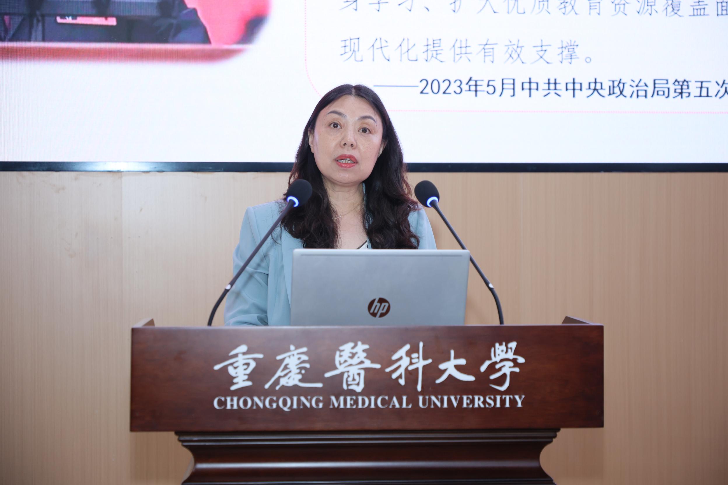 副校长刘恩梅报告了数字重医建设情况,并部署下阶段工作。她表示,数字重医建设不是简单的技术叠加,而是医学高等教育范式的革命性跃迁。要紧紧围绕先进数字化手段助力8868官方注册高质量发展、数字化赋能教育综合改革这两个基本任务线,扎实推进数字重医建设,对接数字教育建设,全面融入数字重庆建设。