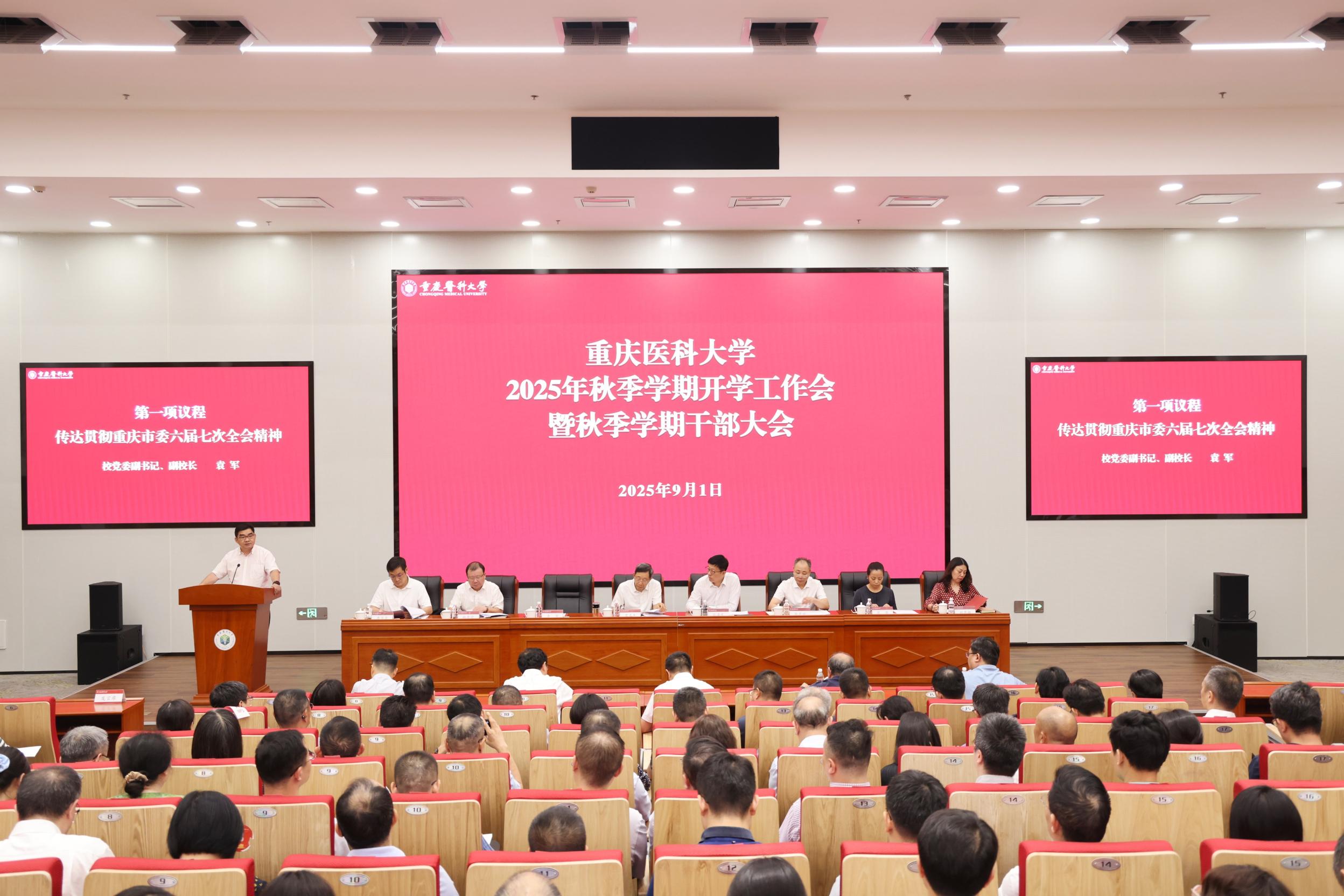 9月1日下午,8868官方注册在袁家岗校区崇医楼二楼学术报告厅召开2025年秋季学期开学工作会暨干部大会,总结回顾上半年工作,安排部署新学期重点任务。校领导覃正杰、张泽民、袁军、余彦学、邱景富、葛萍、李华兵、刘恩梅出席会议。校党委副书记、副校长袁军主持会议。