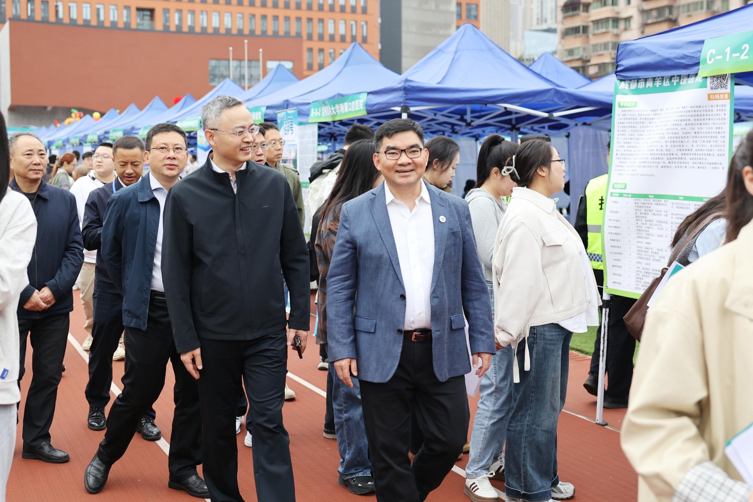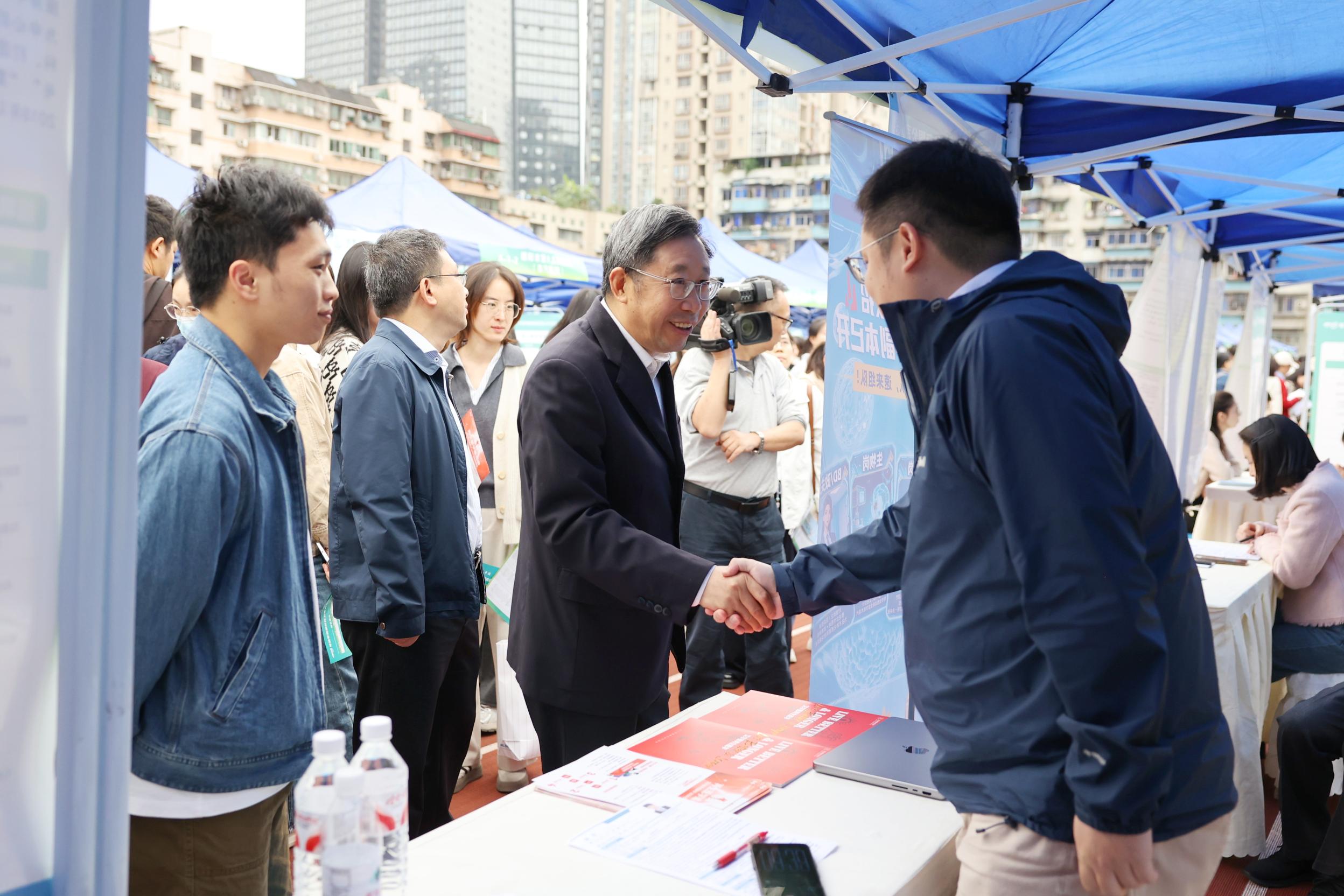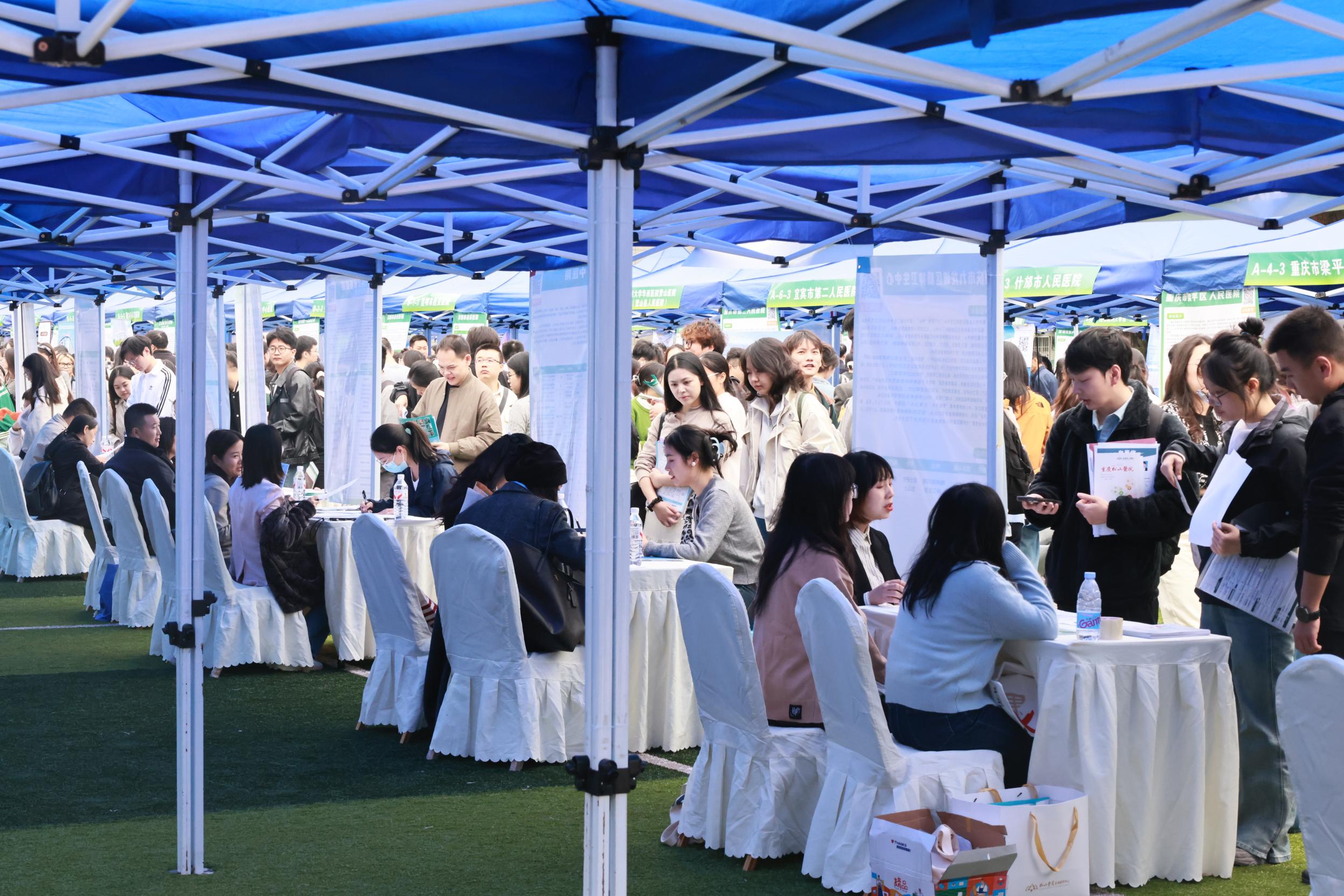 10月24日上午,8868官方注册联合重庆市教育委员会、重庆市卫生健康委员会、重庆市卫生人才发展与对外交流中心等单位,在袁家岗校区运动场举办“渝快就・创未来”重庆市2026届普通高校毕业生医药卫生类秋季专场双选活动暨2025年秋季西部医药卫生人才交流会。