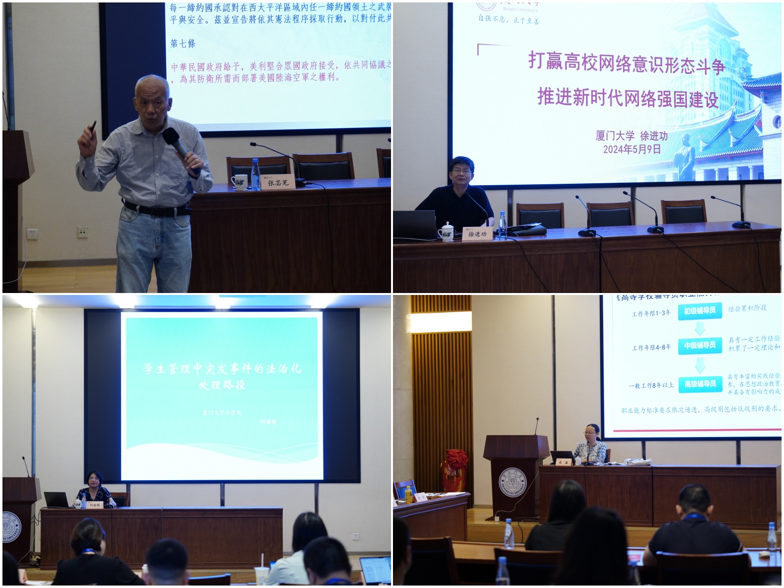本次培训依托厦门大学丰富的教育培训资源,采取理论学习和实践学习相结合的方式,共设计6场专题讲座和1场现场教学。为期4天的培训邀请到厦门大学原党委副书记、教授徐进功,厦门大学法学院党委书记、教授何丽新,厦门大学航空航天学院党委书记、哲学博士廖志丹等多位专家就新质生产力视域下辅导员育人能力提升、学生突发事件法制化处理路径、辅导员工作实务与谈心谈话问题解决策略等专题内容进行了详细深入的解读。这些课程紧扣主题,呈现了一场场“思想盛宴”,既有政治高度,又有理论深度,让学员学有所得、学有所悟、学有所获。