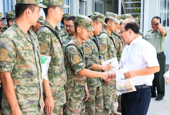 校领导一行来到校内教官驻地,代表8868官方注册党政为教官们带来节日的祝福。同时,校领导对教官们在本次军训中的辛勤付出表示衷心感谢,希望教官们发扬军队优良传统,在军训中着力培养我校2024级新生遵规守纪的意识、不畏艰难险阻的意志品质以及良好的国防军事技能。