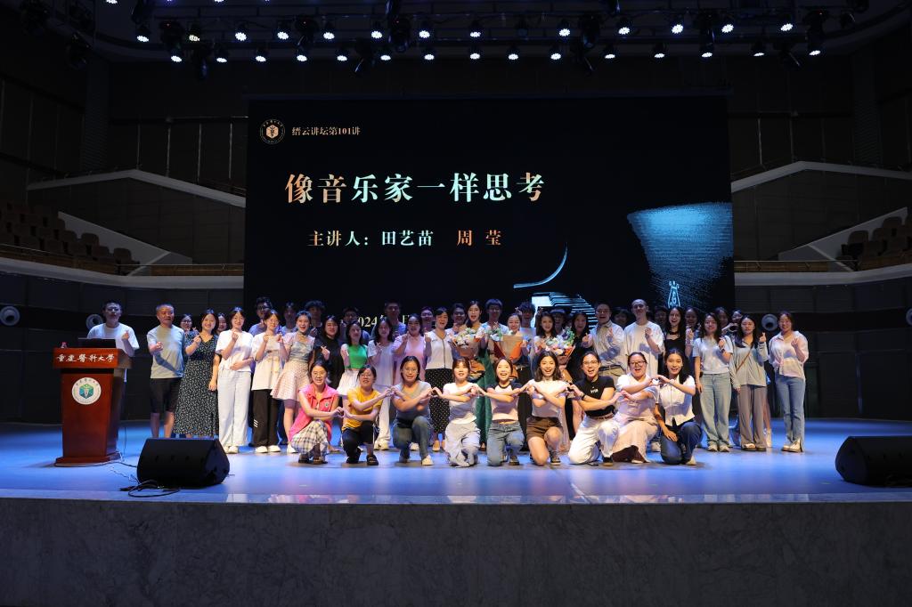 在近3个小时的讲座中,田艺苗用深入浅出的讲解,周莹用精湛高超的演奏,让现场师生全程沉浸享受在这场音乐盛宴中。“古典音乐里的‘平衡法则’也是一种理想健康的生活状态。”讲座尾声,田艺苗与师生们分享了多为古典音乐家的人生哲学,希望大家能够建立平衡的思考方法,在擅长的领域做好擅长的事情。