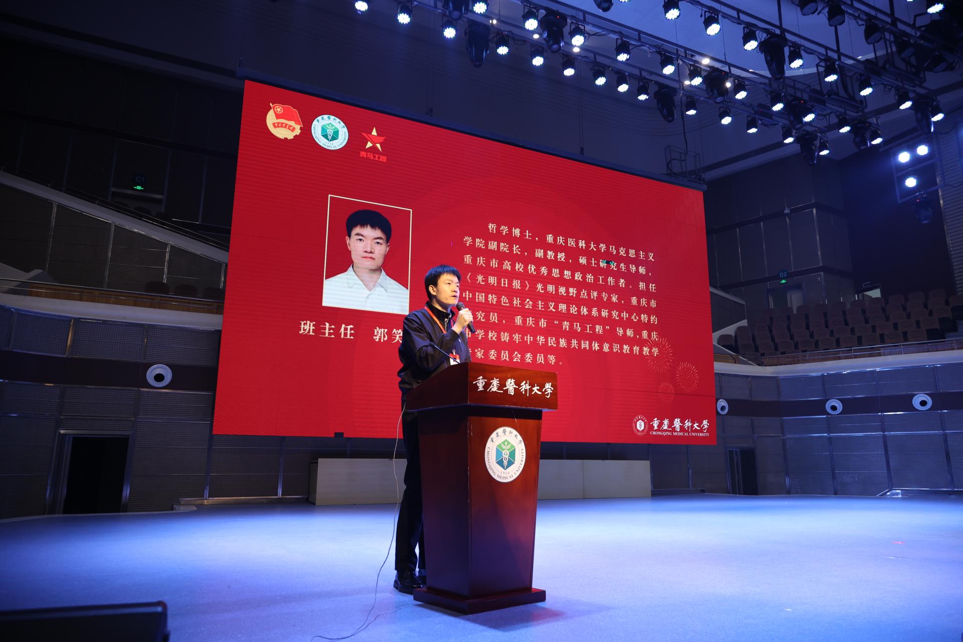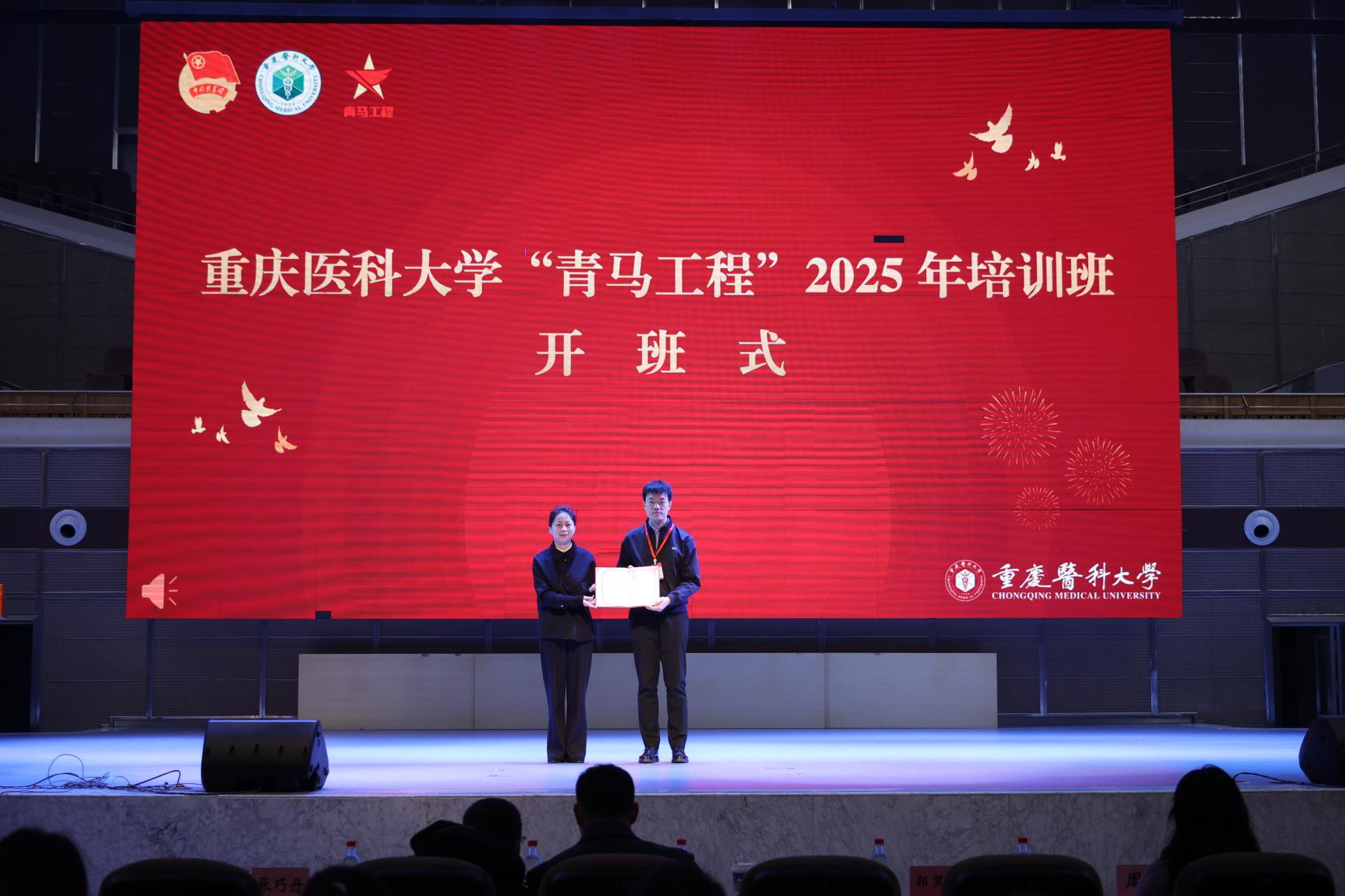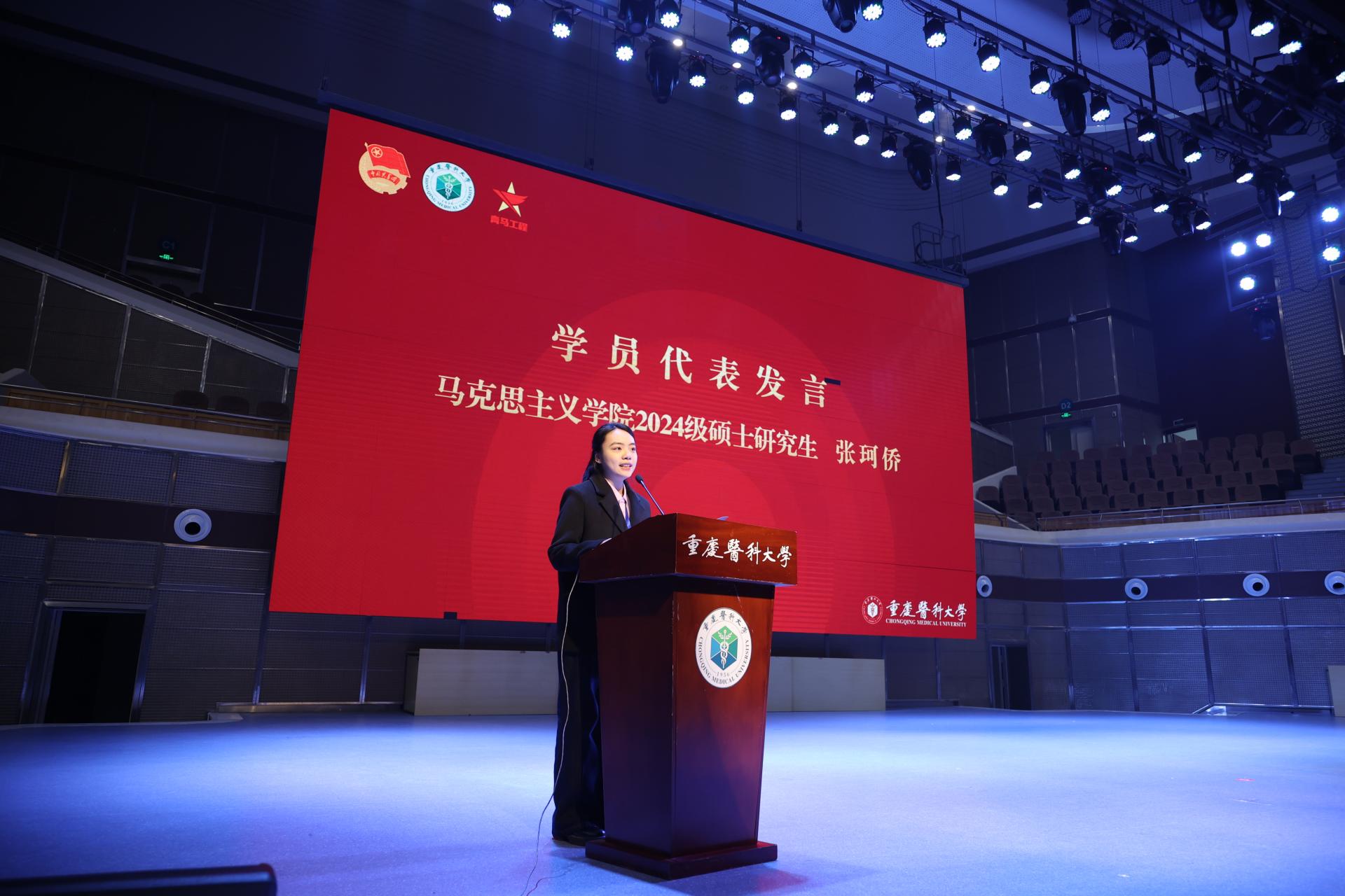 为全面贯彻习近平新时代中国特色社会主义思想,学习宣传贯彻党的二十大和二十届二中、三中全会精神,着力培养理想信念坚定、综合素质能力突出,可堪大任的新时代重医青年骨干,3月22日,8868官方注册在缙云校区同生礼堂举行2025年“青马工程”培训班开班仪式暨第一次培训。8868官方注册党委副书记、副校长袁军,团市委组织部部长程希,党委宣传部、党委学生工作部、校团委、马克思主义学院负责人,各学院师生代表、教师团干部、“青马工程”培训班带组老师和学员等700余人参加本次活动。活动由校团委书记张巧丹主持。