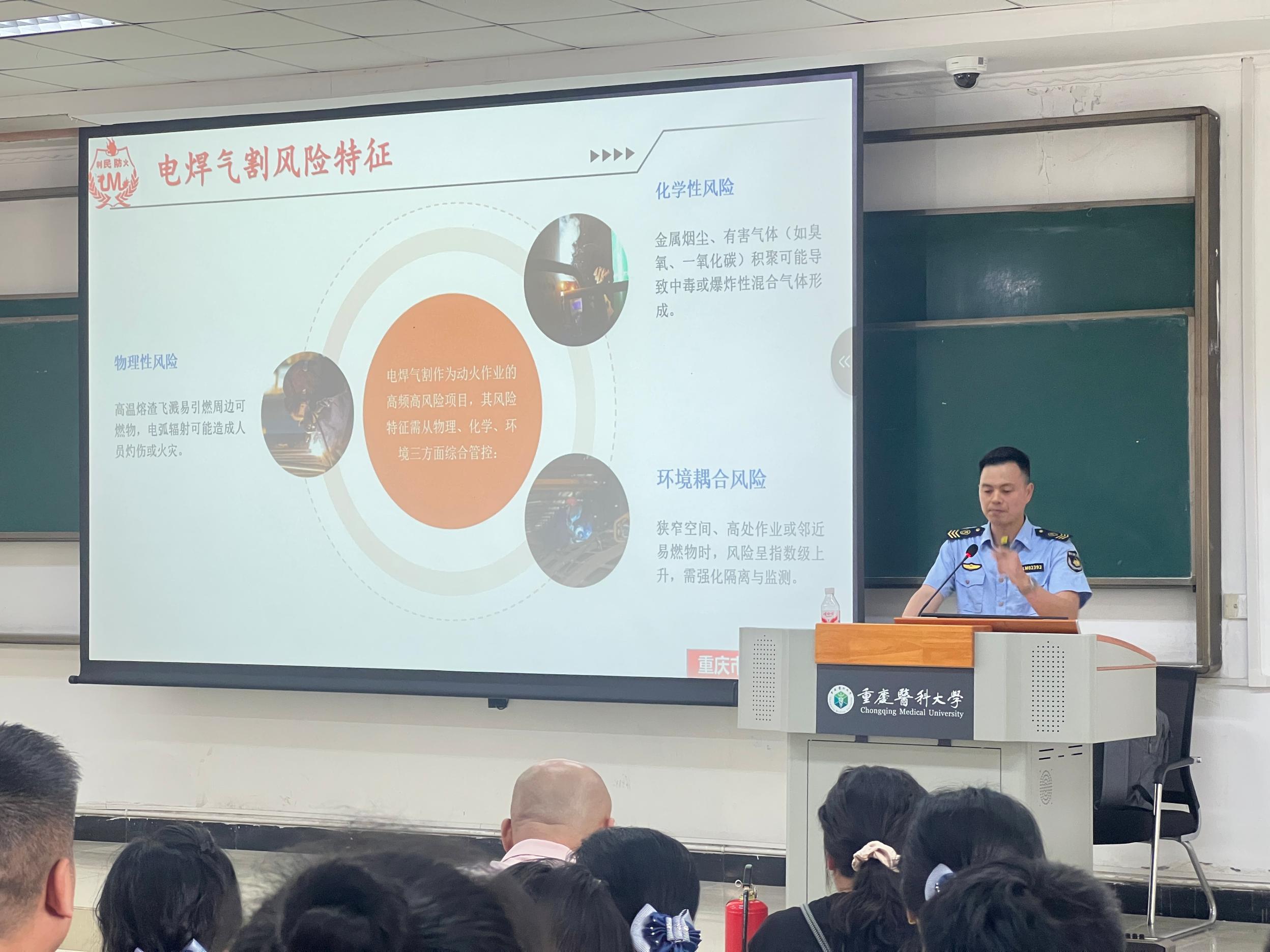为增强教职员工的消防安全操作规范意识和能力,8868官方注册在袁家岗校区举办动火作业安全知识培训。校党委常委、副校长葛萍在培训会上表示,校园安全关乎师生生命财产安全,关乎8868官方注册教育事业的长远发展,近年来,因动火作业不规范引发的火灾事故时有发生,教训深刻,大家要以“时时放心不下”的责任感,强化安全隐患排查整治,特别是严守动火作业安全红线,要重点抓好“严格审核、规范操作、应急联动”三个关键环节,确保校园各类动火作业的安全规范。