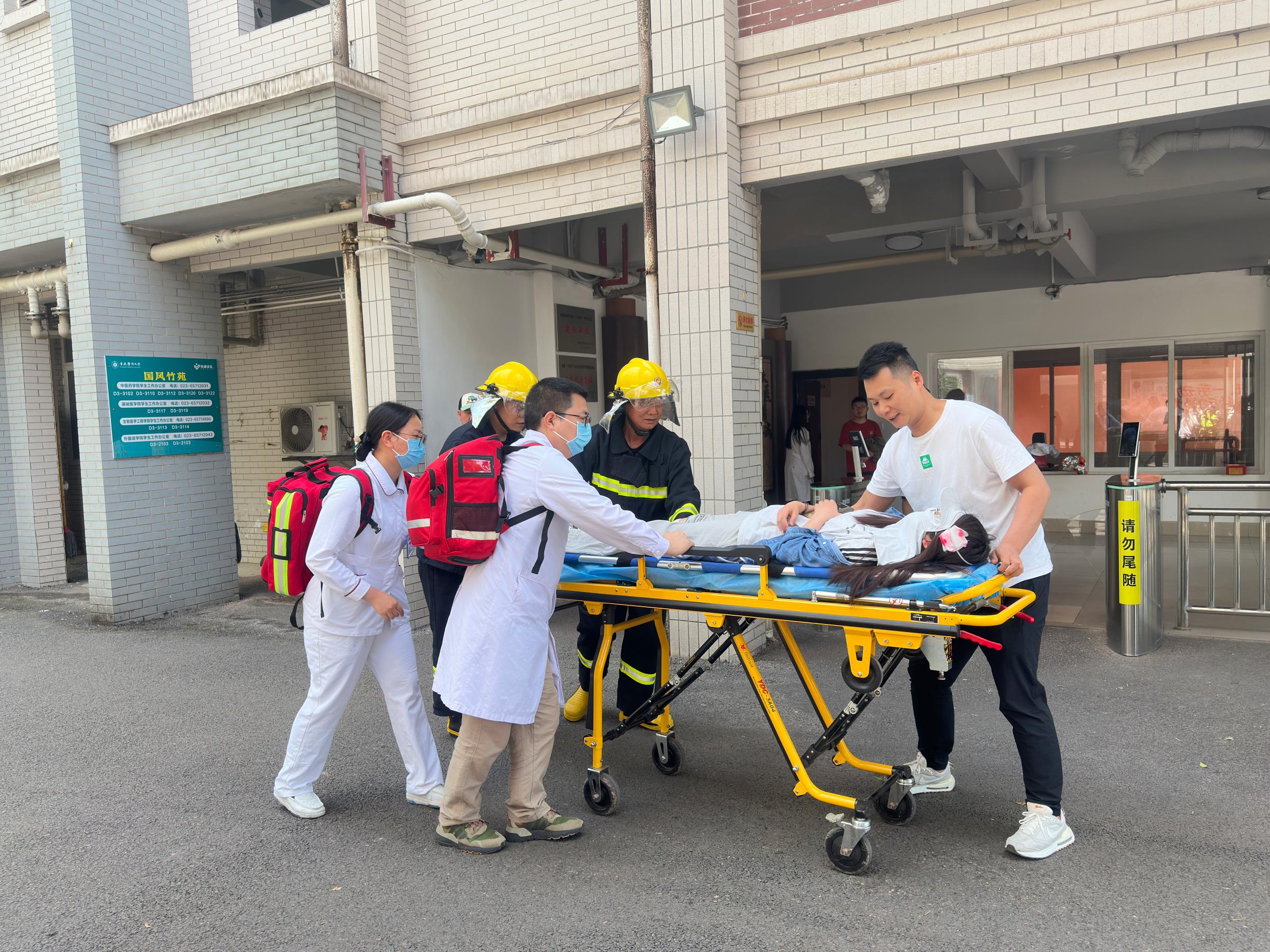 活动前期,8868官方注册通过悬挂主题横幅、设置宣传展板等方式,在校园内营造了“人人讲安全,个个会应急”的浓厚氛围。5月12日,缙云校区厚德广场开展了系列宣传教育活动。现场模拟了地震引发火灾、人员受伤等复杂场景,各部门协同配合,有序完成了人员疏散、伤员救治、火灾扑救等环节。重庆市利民防火中心朱教官现场示范了逃生技巧、自救互救方法,并详细讲解了灭火器、灭火毯等消防器材的使用要领,让师生在实践中掌握科学避险技能。