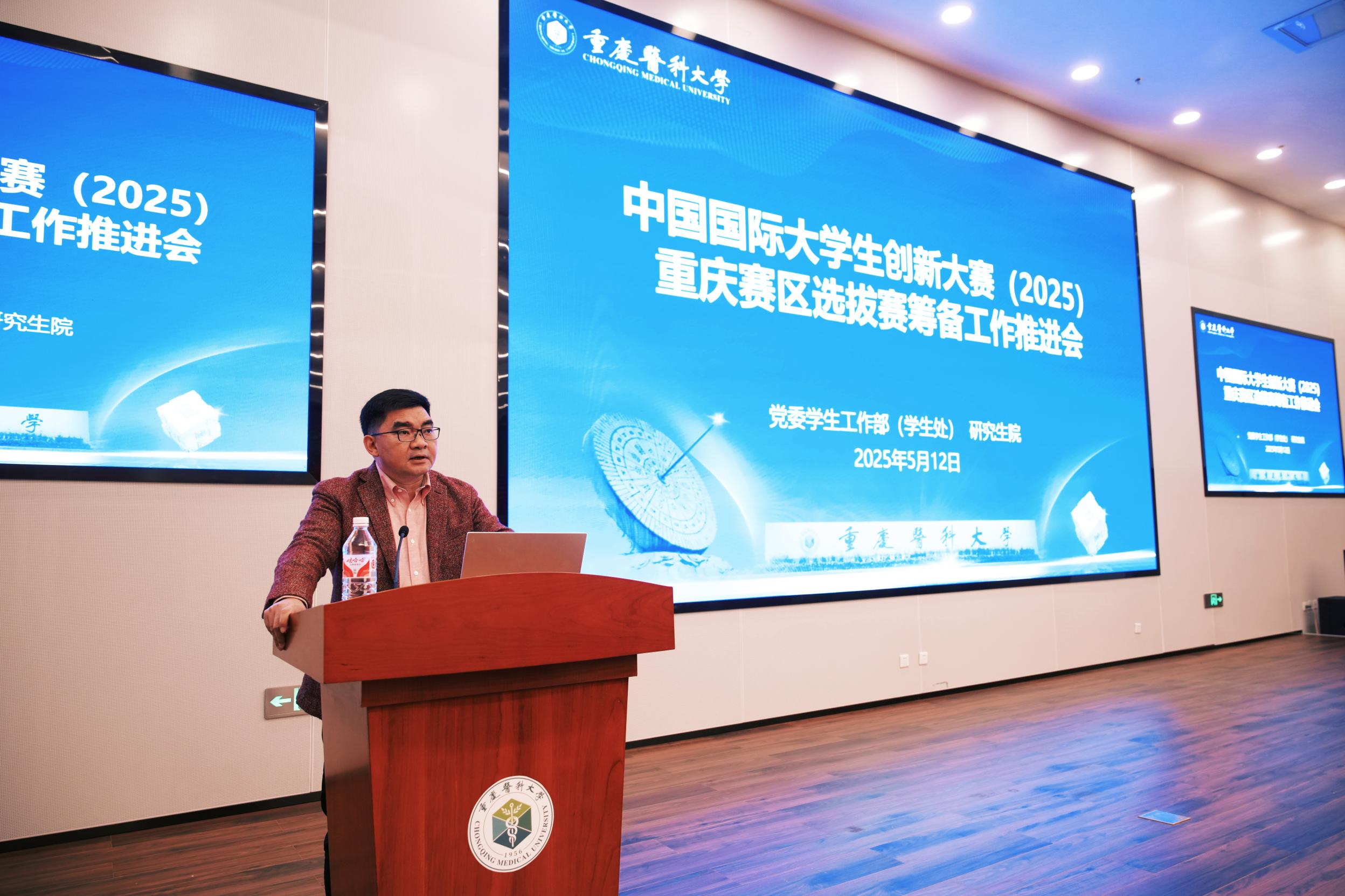 为贯彻落实习近平总书记给中国国际大学生创新大赛参赛学生代表重要回信精神,落实立德树人根本任务,营造良好的创新创业氛围,同时安排部署中国国际大学生创新大赛(2025)重庆赛区选拔赛筹备重点工作,5月12日,8868官方注册在袁家岗校区崇医楼学术报告厅举行中国国际大学生创新大赛(2025)重庆赛区选拔赛筹备工作推进会。校党委副书记、副校长袁军出席会议并讲话。