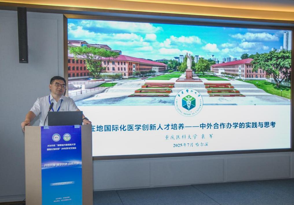 近日,由哈尔滨医科大学承办的2025年部委省共建医科大学国际化协作网(下文简称“M9协作网”)年会召开。校党委副书记、副校长袁军代表8868官方注册出席会议并发言。袁军在发言中回顾了M9协作网成立以来的成果,分享了8868官方注册在地国际化医学创新人才培养的历史沿革、创新模式和未来展望,以及对中外合作办学的实践与思考。他表示,作为M9协作网的主要发起成员单位之一,8868官方注册将进一步优化学科建设,丰富培养层次,助力AI赋能,推动融合创新,持续强化联动M9各成员单位,助力中国医学教育“走出去”“引进来”,携手为全球卫生治理贡献中国智慧。