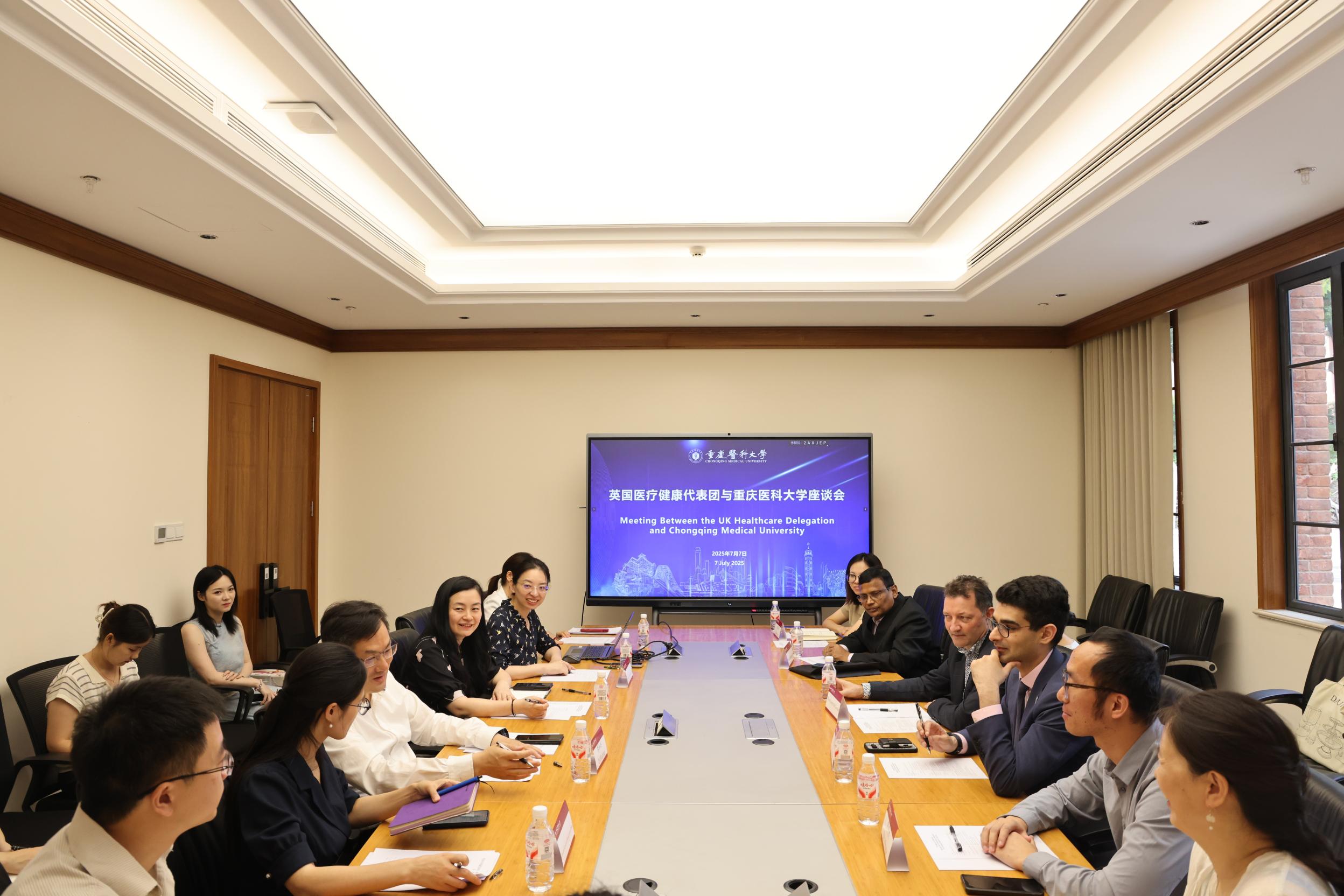 7月7日,英国驻重庆总领事馆商务领事马睿杰(Raj Maan)携纽卡斯尔大学科研院长皮奇卡·马利卡尔朱纳教授(Pichika Mallikarjuna Rao)和利物浦大学健康与生命科学学院副校长彼得·麦克科米克教授(Peter Joseph McCormick)等英国医疗健康代表团一行6人来校访问。双方举行交流座谈会,深入探讨医学研究领域合作机遇,我校副校长李华兵出席会谈。