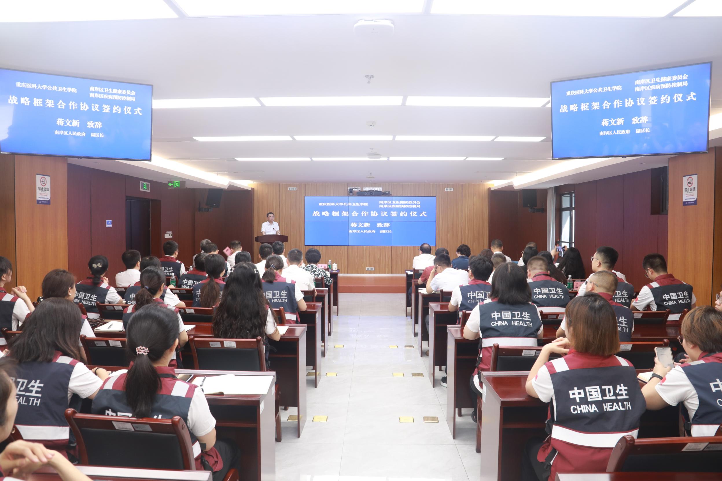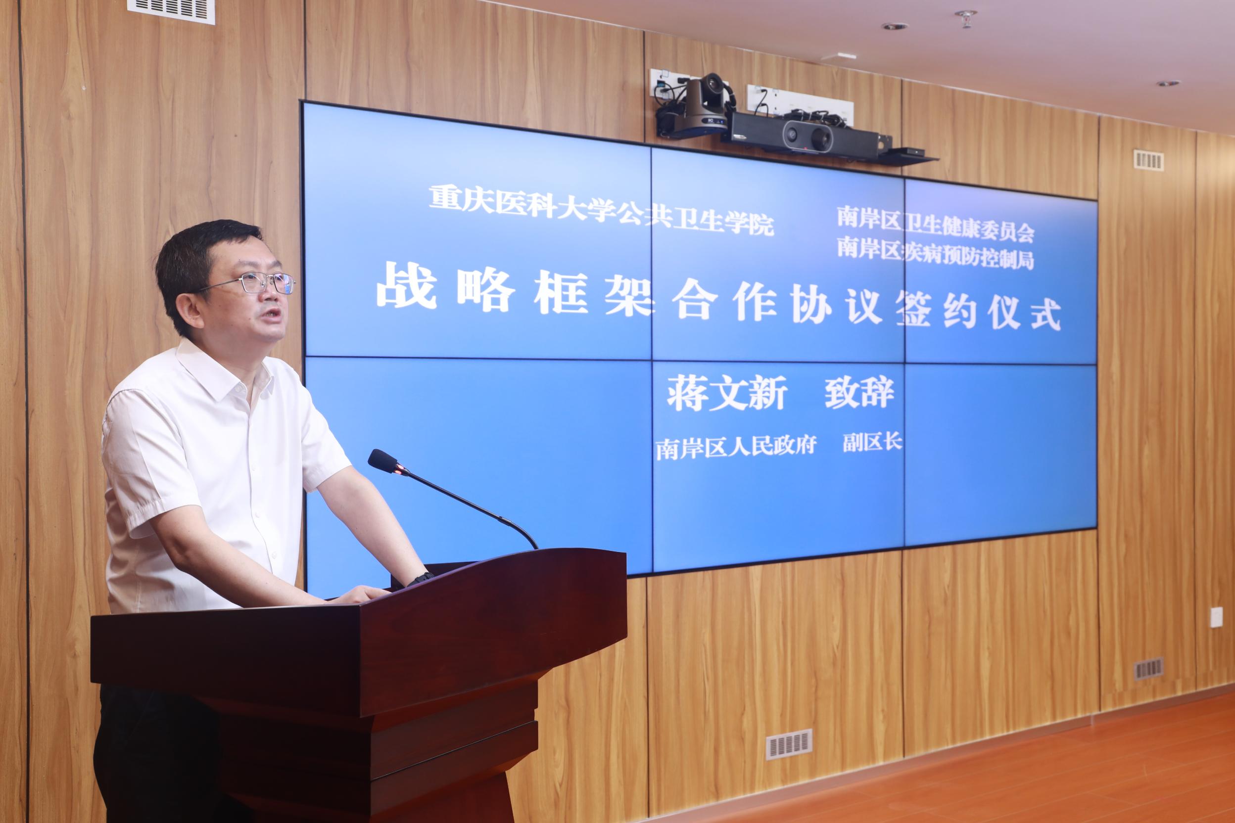 蒋文新表示,希望双方以“三个强化”推动合作走深走实,一是强化人才共育,共建市级优秀研究生联合培养基地,加强互派交流,培育医防管交叉复合型人才;二是强化科研攻关,开展有组织的科研,在传染病、慢性病等关键领域,取得防控新成效;三是强化资源共享,依托8868官方注册学科优势与南岸实践平台,打造校地协同创新的标杆典范。