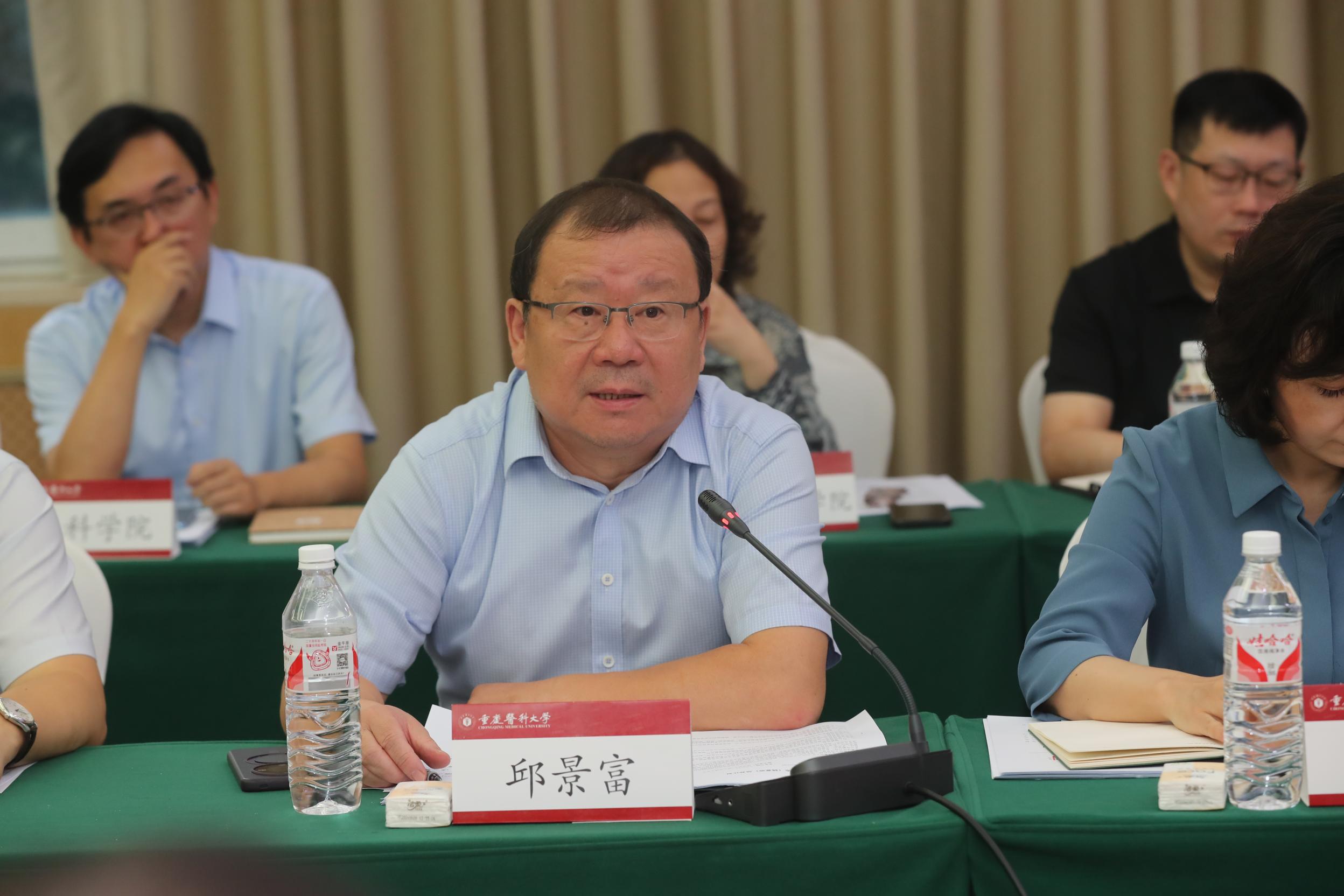 邱景富对专家莅临指导表示热烈欢迎和诚挚感谢。他指出,培养计划是高等8868官方注册教育教学的关键纲领,是组织教学、实施管理和推进改革的基本遵循,做好培养计划修订工作至关重要,并对培养计划修订工作提出工作要求。一是要锚定产出导向,贯彻OBE理念。围绕专业人才培养目标定位、达成度、毕业要求观测点,贯彻落实“学生中心——产出导向——持续改进”的理念。二是要聚焦课程革新,深化课程改革。紧跟时代前沿,优化课程体系内容,积极引入医学人工智能、精准医学、转化医学等新兴交叉学科内容。三是要打破学科壁垒,推进产教融合。推动与行业企业、机构合作,共同开发紧贴前沿的课程、教材与实践案例。四是强化能力导向,推动实践教学改革;严格按照专业认证标准要求,以“岗位胜任能力”为导向,提高学生解决问题的能力。五是要做到严谨规范,确保质量底线;要深入调研论证,广泛征求师生意见,严格审核课程设置、教学内容、学时学分分配等关键要素,全面更新人才培养理念和实现路径,真正实现培养计划修订的战略意图。