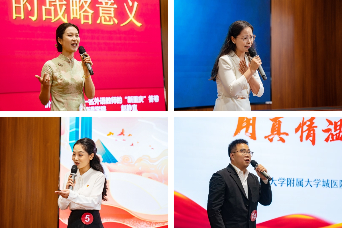 比赛现场,选手们紧紧围绕“学习新思想 建设新重庆 强国伴我行”这一主题,密切结合思想和工作实际,为现场观众呈现了一场精彩纷呈的理论宣讲盛宴。他们有的立足专业岗位,深情讲述作为人民健康“侦察兵”的坚守、在急救前线守护“新重庆速度”的担当;有的聚焦立德树人使命,分享了在课堂上引导学生探索医学前沿、开拓国际视野、扎根基层奉献的探索故事;有的用青春的视角诠释了对“新思想”与“新重庆”的理解,从轨道交通的“快”与市井生活的“慢”里,敏锐捕捉并动情讲述了城市发展中的民生温度……深入、深情、深刻的宣讲充分展示了新时代重医青年师生踔厉奋发、深学笃行的良好风貌。