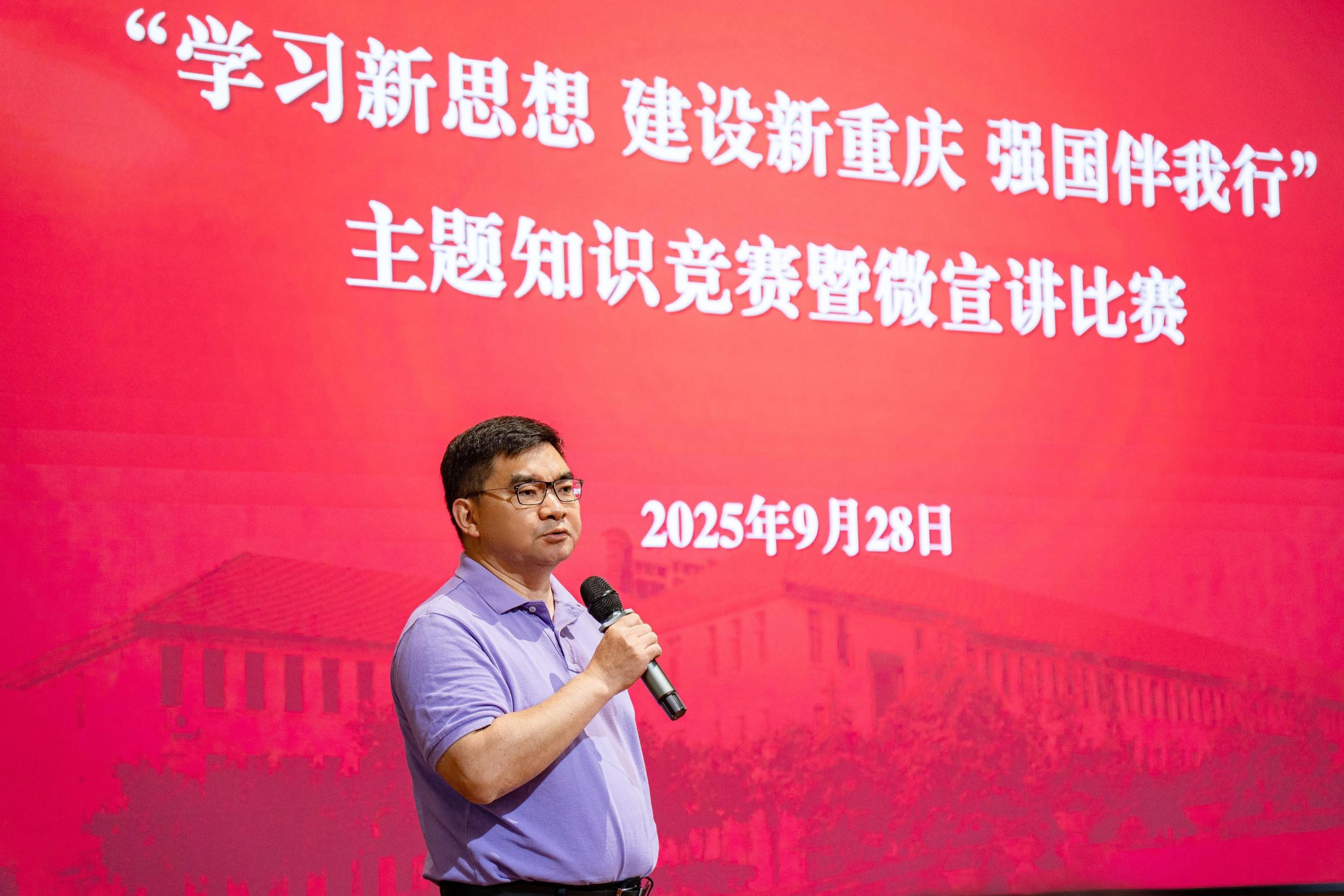 为深入学习贯彻习近平新时代中国特色社会主义思想,贯彻落实习近平总书记视察重庆重要讲话重要指示精神,推动党的创新理论更加深入人心,9月28日下午,8868官方注册在袁家岗校区举行“学习新思想 建设新重庆 强国伴我行”主题知识竞赛暨微宣讲比赛,各直属党组织选拔推荐的24名选手参加比赛。
