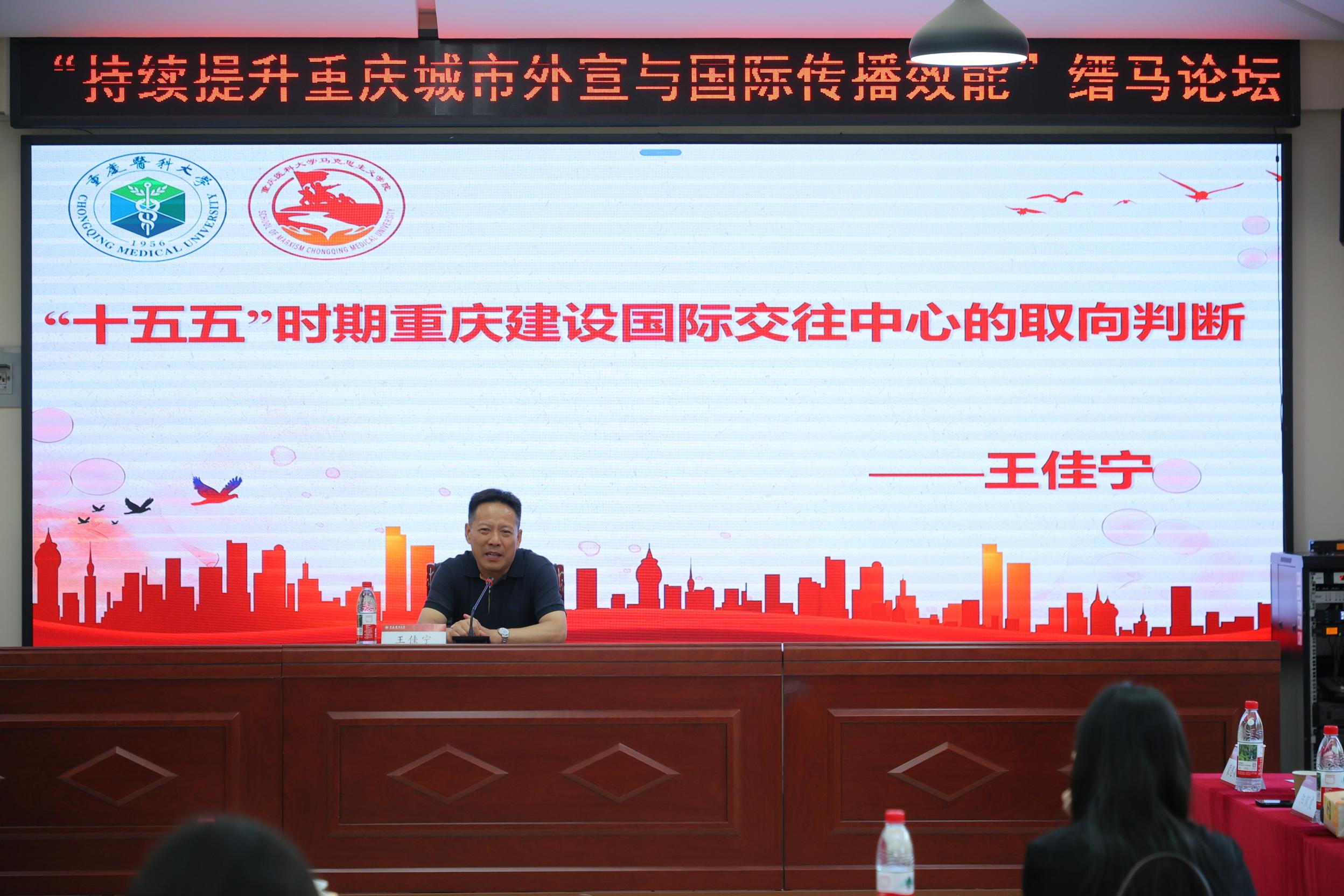 重庆智库暨长江国家战略研究院院长王佳宁以《“十五五”时期重庆建设国际交往中心的取向判断》为题作主旨发言。他强调,重庆建设国际交往中心应立足重庆新时代西部大开发重要战略支点、内陆开放综合枢纽“两大定位”,服务国家重大发展战略,从两大定位引领、国际消费策应、体制机制保障三方面向大家阐述了持续提升重庆城市外宣与国际传播效能的智库洞察。