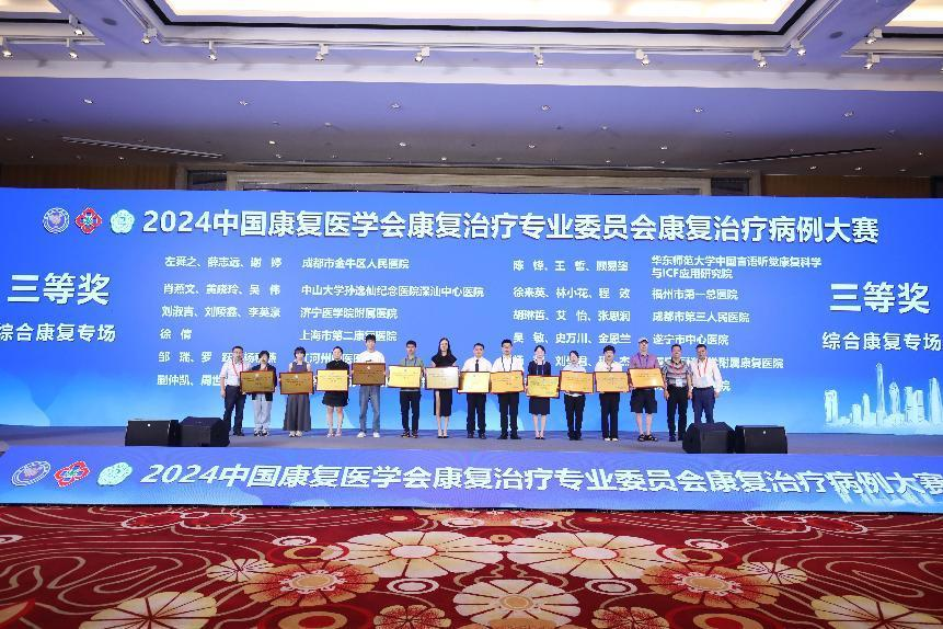 8月24日,附属康复医院大公馆康复医学科治疗师杨辉、神经康复科护士长程杰、中医科/中医康复科医生刘曼君组成的心脏康复团队在2024中国康复医学会康复治疗专业委员会康复治疗病例大赛中获得大赛(综合康复病例)三等奖。
