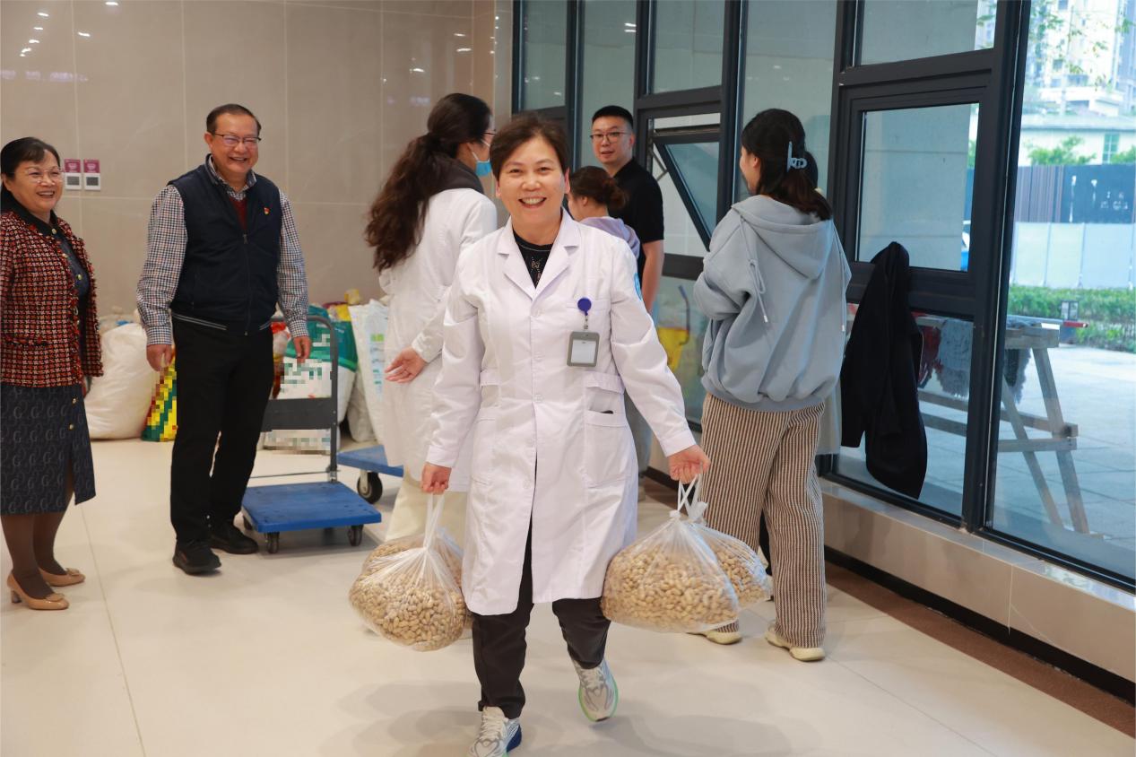 为贯彻落实习近平总书记关于全面推进乡村振兴和选派驻村第一书记的重要指示精神,搭建起消费帮扶供需对接的桥梁,凝聚起共同参与乡村振兴的合力,11月6日-7日,附属康复医院工会开展2024年“冬送温暖”消费帮扶活动,党委书记李曦,党委委员、副院长黄开秀组织部分工会委员一同到大渡口院区、大公馆院区慰问一线职工,送上花生等消费帮扶慰问品,送去立冬的温暖,提升职工获得感。本次活动共发放消费帮扶慰问品1800余斤,全部采购自医院“第一书记”冯安模驻点村石柱县三河镇四方村,充分发挥消费帮扶在助农增收中的重要作用,切实促进农民稳定增收。
