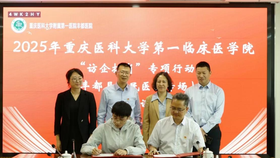 张丹表示,高校毕业生是党和国家宝贵的人才资源,毕业生就业关乎民生大计,关系着医疗卫生人才的接续培养和卫生事业的高质量发展。此次专项行动既是为毕业生实现高质量充分就业保驾护航,更是加强第一临床学院(附属第一医院)与丰都县人民医院在医学教育、医学人才方面的合作,共同促进医联体合作发展新局面。蔡云刚在致辞中介绍了医院近年来的发展及2025年用人需求,他表示,希望以此次“访企拓岗”专项行动为契机,持续深化交流合作,不断加强人才培养、医教研协同发展等方面的实质性成效。