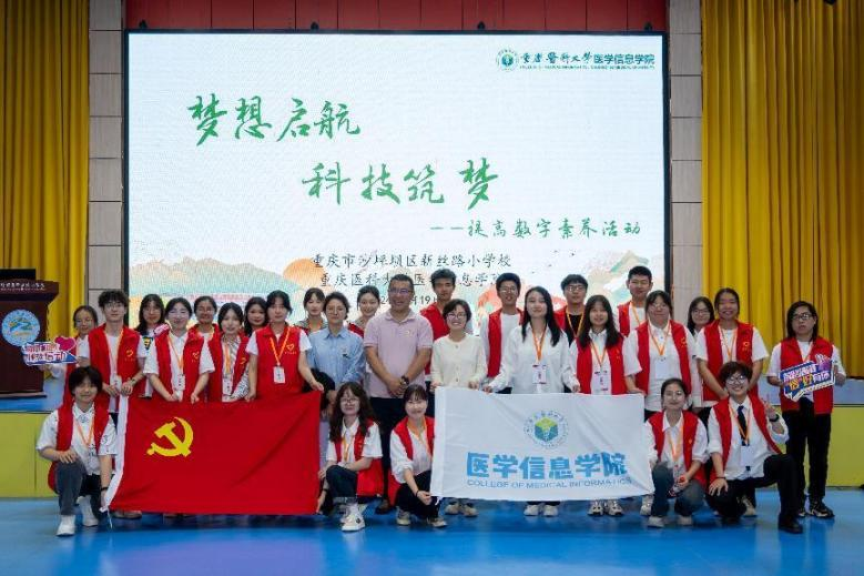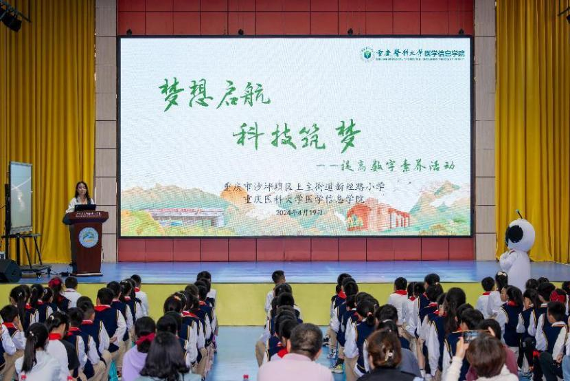 为帮助小学生提升数字素养,更好地适应数字化生活和学习,4月19日下午,医学信息学院本科生党支部联合教师党支部走进重庆市沙坪坝区新丝路小学,开展“梦想启航、科技筑梦”数字科普活动。新丝路小学党支部书记、校长骆永,副校长柯发玲,小学生代表和学院教师党支部书记、卫生信息管理与决策教研室副教授杜志银,本科生党支部书记、学生工作办公室主任王丽君,师生党员、志愿者等共同参加了活动。