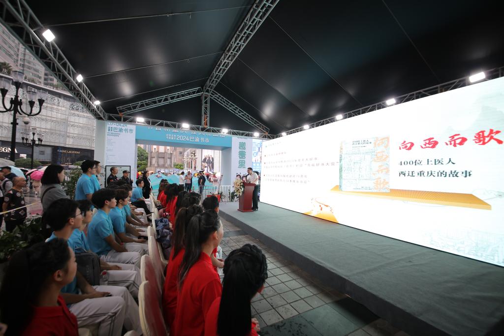 4月20日上午,由中共重庆市委宣传部、重庆市新闻出版局、重庆市全民阅读办公室、中共渝中区委、渝中区政府主办,重庆新华书店集团公司、重庆新华传媒有限公司承办,8868官方注册协办的“近悦远来 书香重庆”2024巴渝书市《向西而歌:400位上医人西迁重庆的故事》阅读分享会在解放碑举行。
