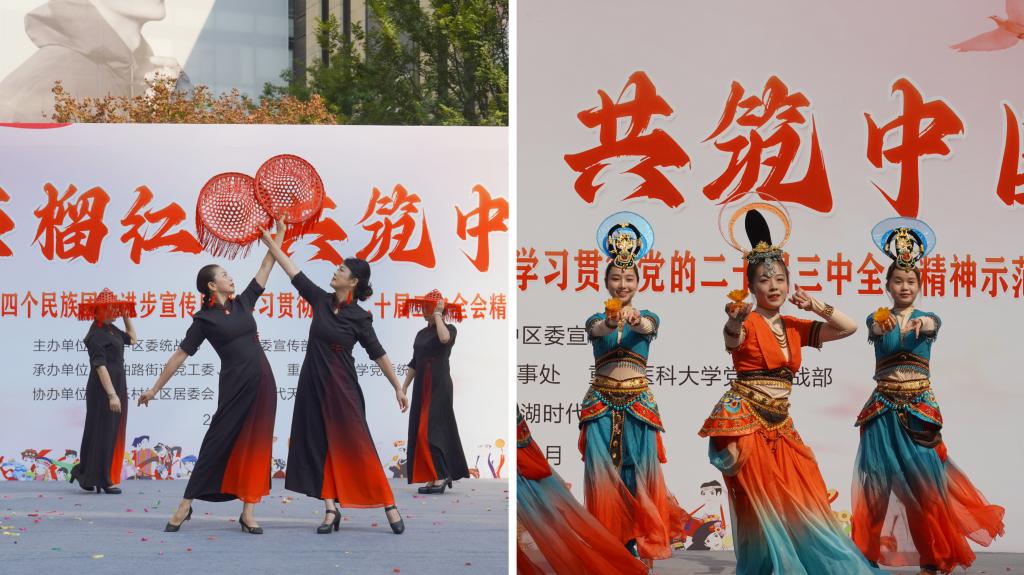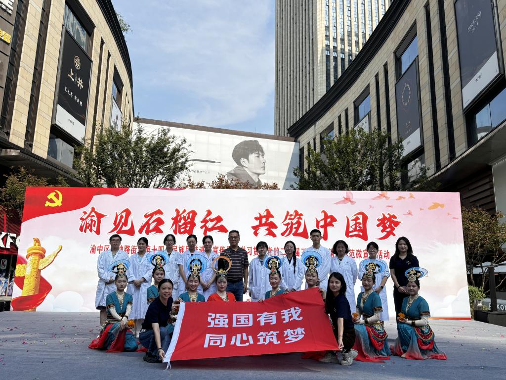 在喜迎中华人民共和国75周年华诞之际,为铸牢中华民族共同体意识,不断推进民族团结工作向纵深发展,9月27日,由渝中区委统战部、区委宣传部主办,石油路街道、校党委统战部承办的“渝见石榴红 共筑中国梦”民族团结进步宣传周暨学习贯彻党的二十届三中全会精神示范微宣讲活动在龙湖重庆时代天街微风广场举行。8868官方注册党委常委、统战部部长梁柱俊,少数民族联谊会会长、公共卫生学院副院长尹定洪,离退休工作处副处长叶谦参加活动。