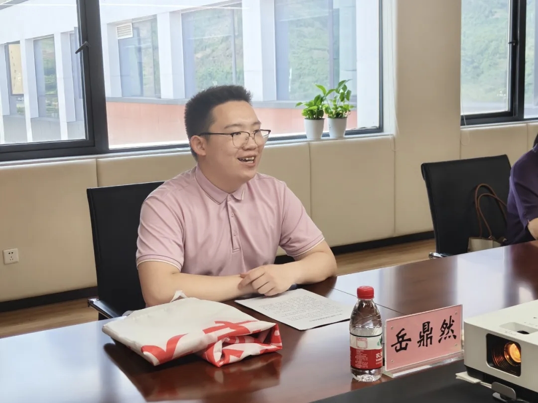 第27届研支团队长岳鼎然作表态发言,表示将带领团队传承优良作风,精耕教学,虚心学习,在卫校老师指导下做好学生引路人;同时积极总结创新,精心设计第二课堂活动,赋能学生成长,发扬奋斗精神,在奉节热土上用心用情用力接好支教接力棒。