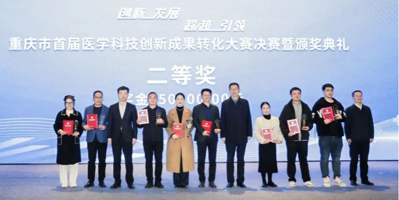 11月29日,重庆市医学科技创新成果转化大赛在重庆沙坪坝区圆满落幕。本次大赛由重庆市卫生健康委员会、重庆市科学技术局、重庆市经济和信息化委员会、重庆市药品监督管理局和重庆市知识产权局共同主办。大赛共有376个项目,最终46项优秀成果进入决赛。经过角逐,大赛共评选出一等奖4项,二等奖8项,三等奖10项。大赛期间共促成超20项成果转化,签约金额近2亿元。